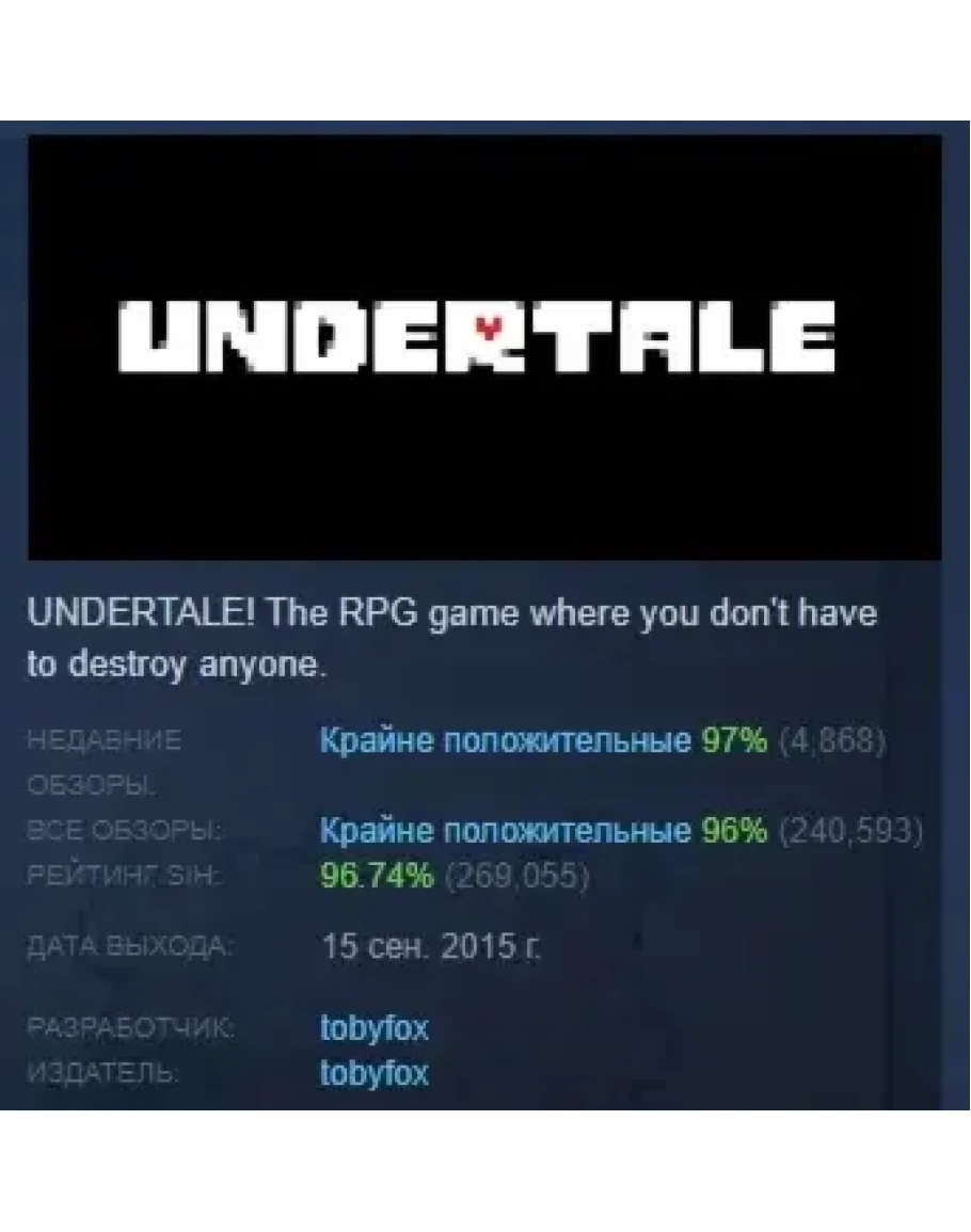 Undertale АВТОДОСТАВКА STEAM РОССИЯ