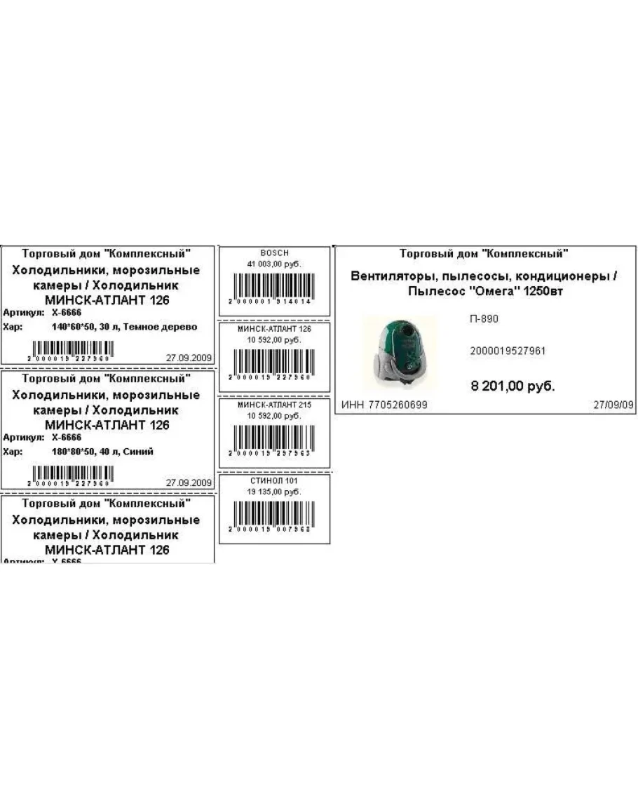 • Форм ценников может быть множество и, при этом, на каждом рабочем месте только свои, которые необходимы для работы конкретному пользователю;