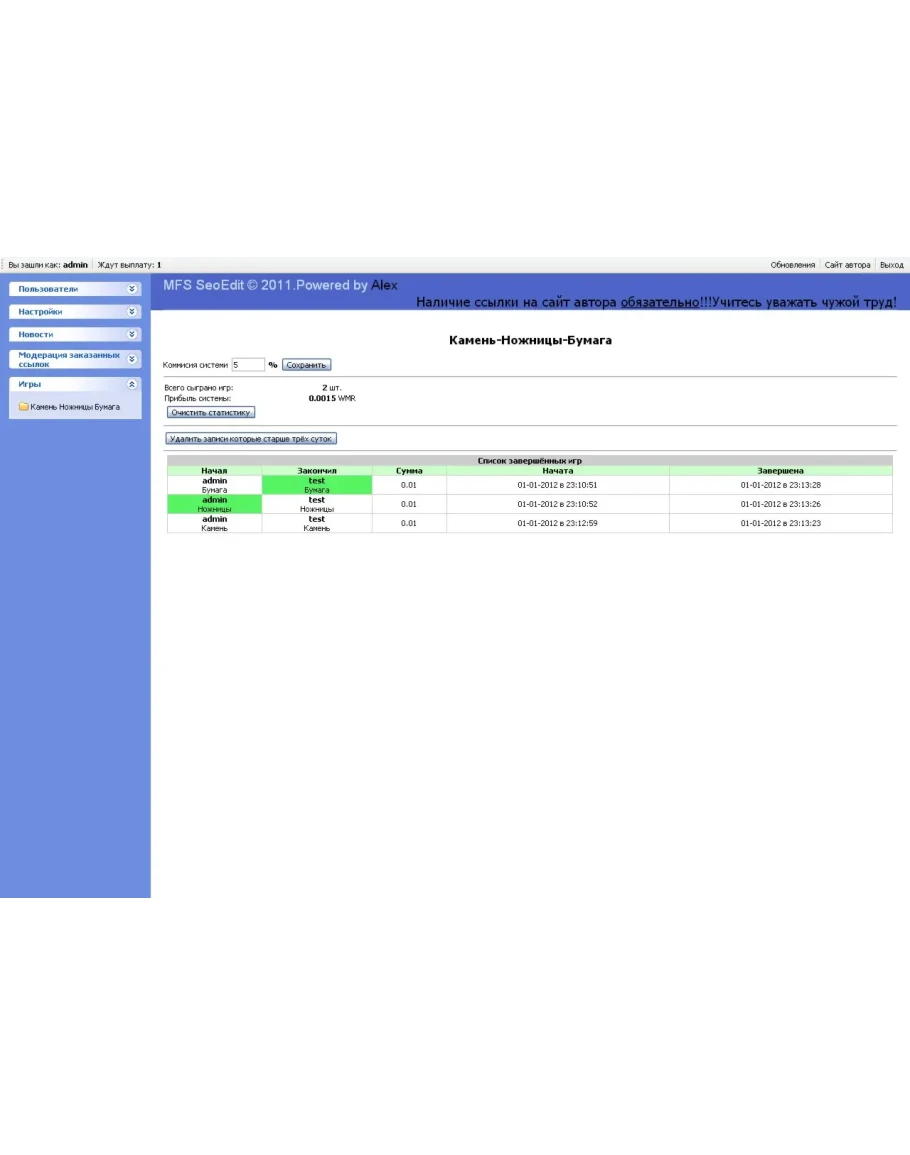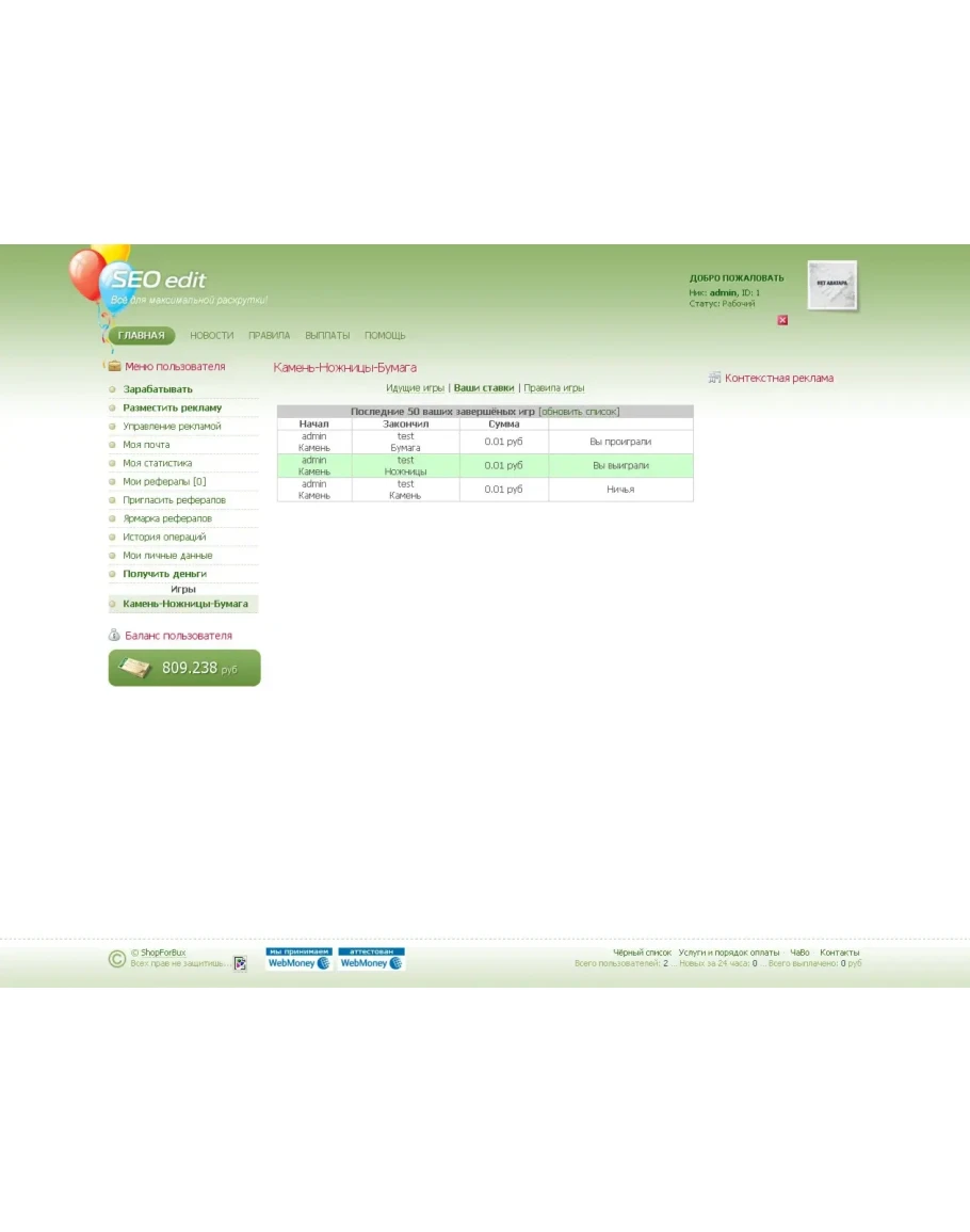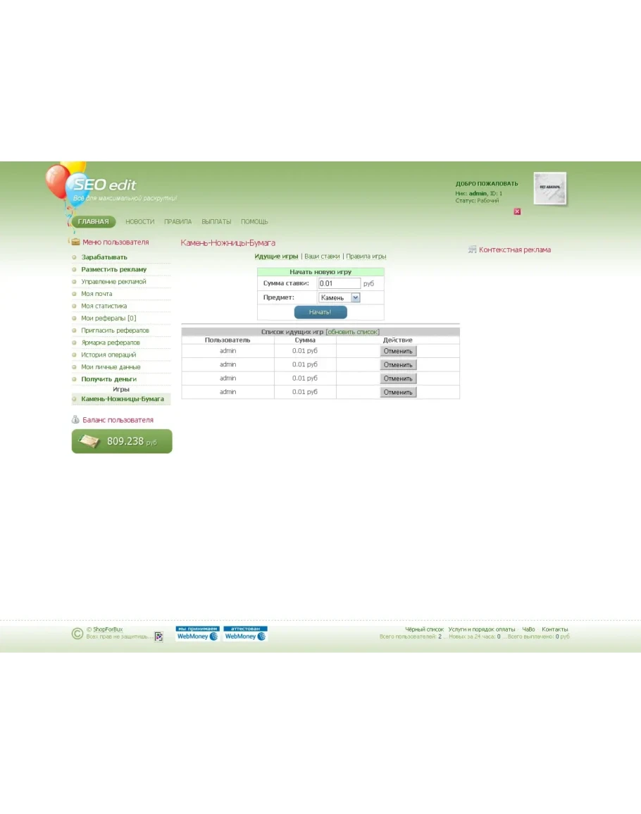 Известная всем игра "Камень, ножницы, бумага" для скрипта SeoEdit + админка.