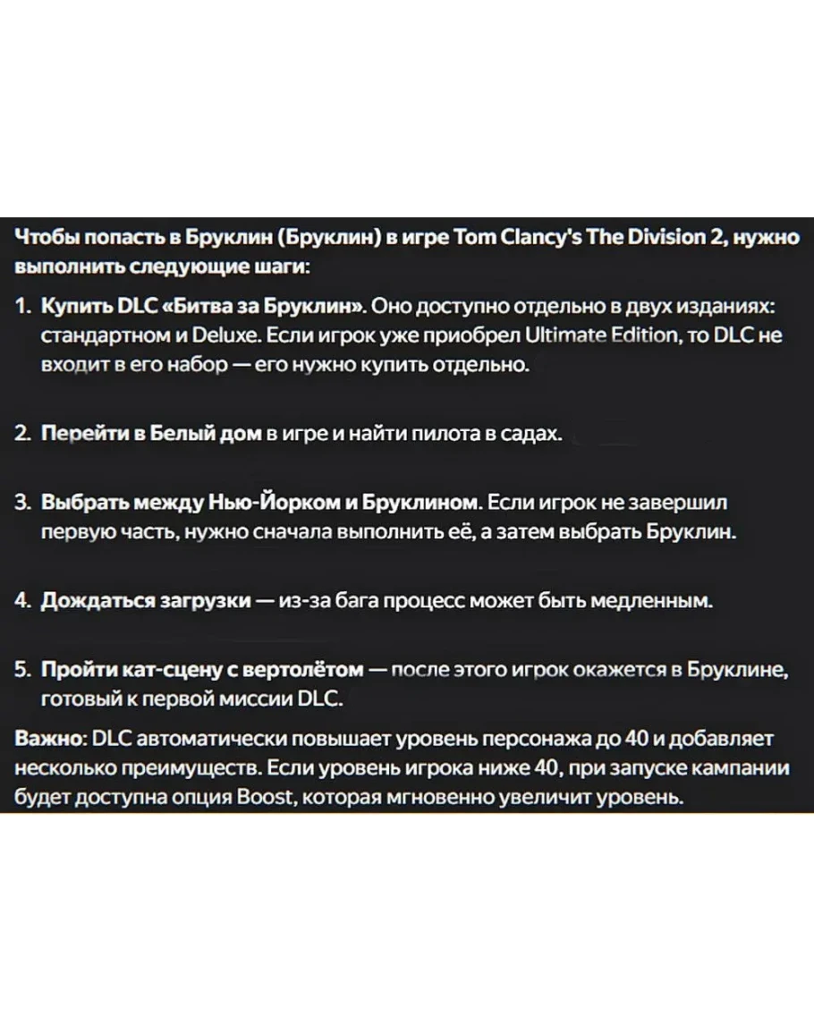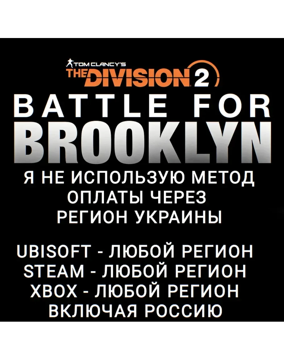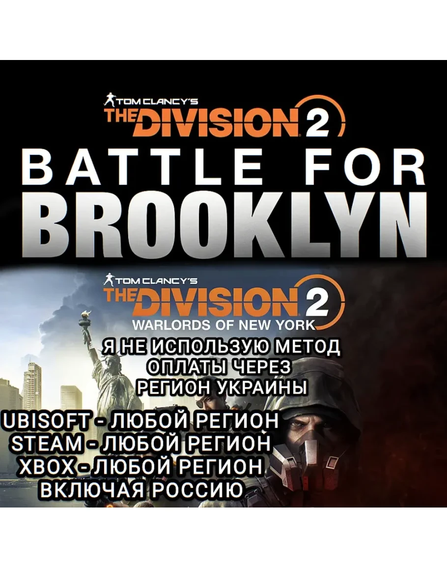 ☑️ДОПОЛНЕНИЕ BATTLE FOR BROOKLYN + ЭКСКЛЮЗИВНАЯ КОСМЕТИКА Бруклин находится под угрозой, поскольку Уборщики намерены завершить то, что они начали в Нью-Йорке. Battle for Brooklyn - это дополнение для Division 2, для которого требуется базовая игра✔️