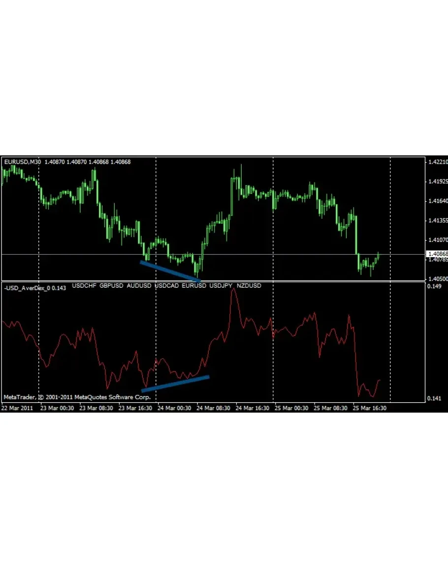 В связи с тем, что EURUSD в направлении своего движения противоположно доллару США, этот индикатор идеально подходит для анализа пары EURUSD.