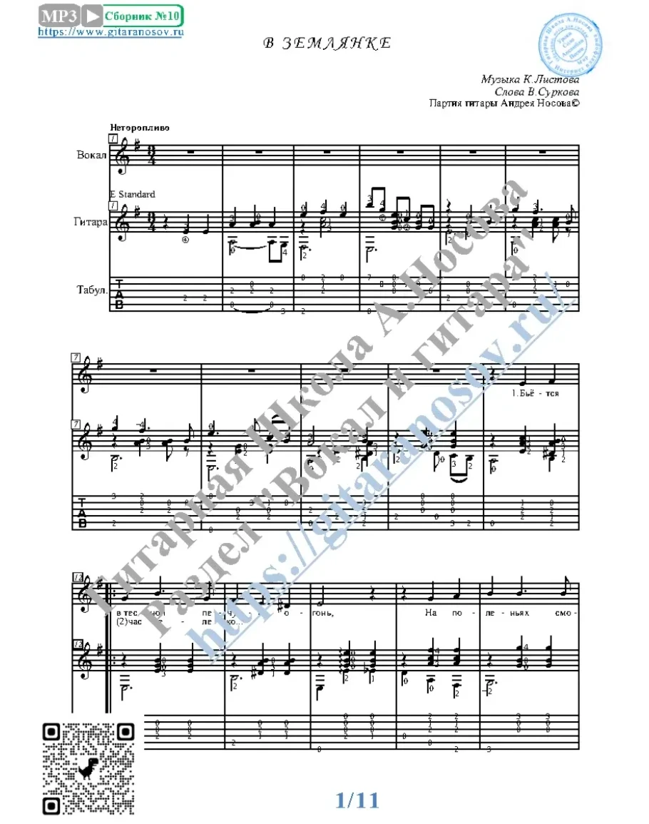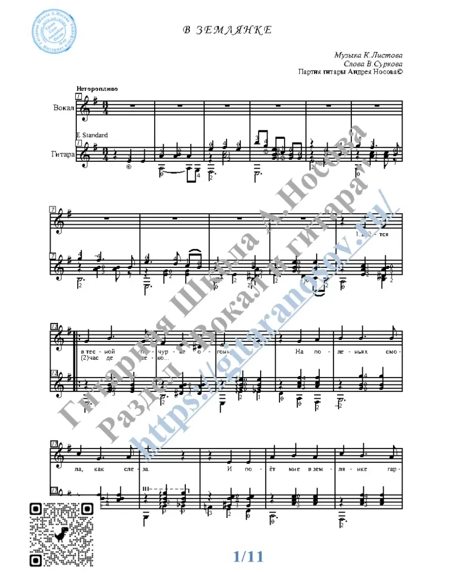 Товар состоит из двух частей (в одном PDF): 1 – Вокальная партия + гитарная партия с табулатурой; 2 – Вокальная партия + гитарная партия без табулатуры. Прилагается ссылка на прослушивание / скачивание mp3.