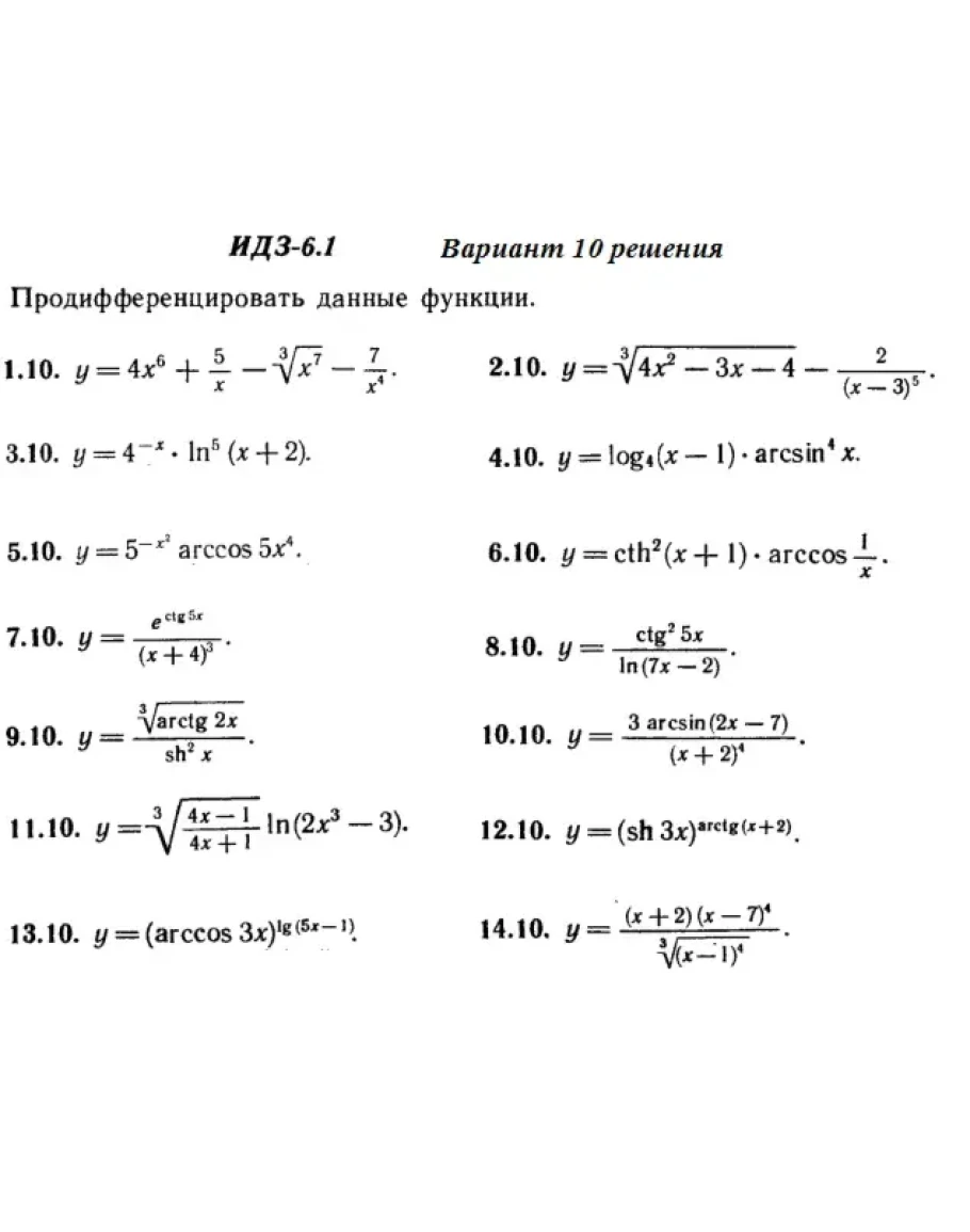 ИДЗ 6.1 Вариант 10 Рябушко (задания на стр. 205-218 в учебнике)