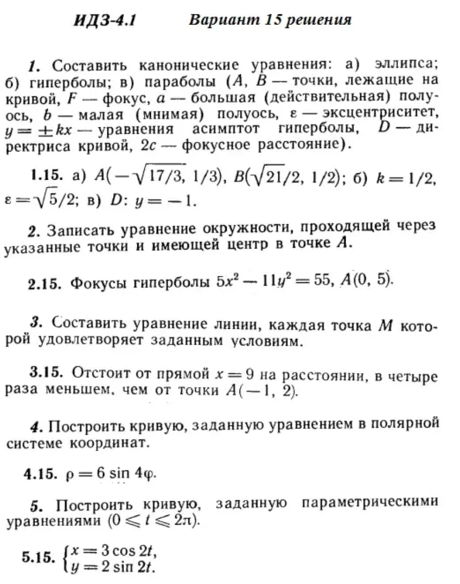 Вариант 15 ИДЗ 4.1 Решебник Рябушко часть 1