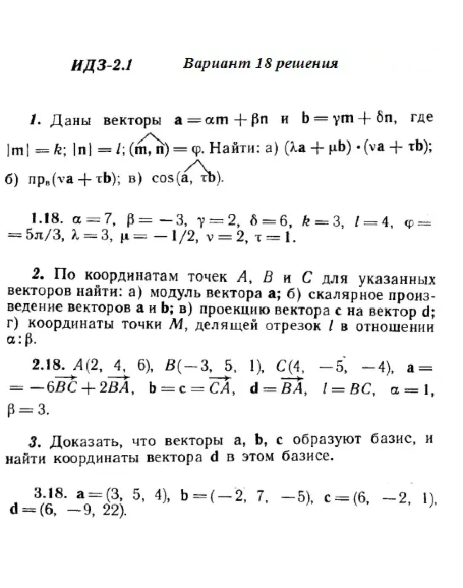 ИДЗ 2.1 Вариант 18 Рябушко (задания на стр. 67-73 в учебнике)