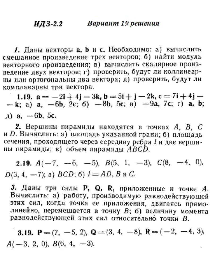 Вариант 19 ИДЗ 2.2 Решебник Рябушко часть 1