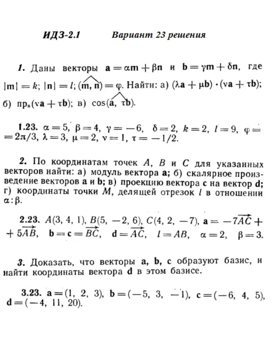 ИДЗ 2.1 Вариант 23 Рябушко (задания на стр. 67-73 в учебнике)
