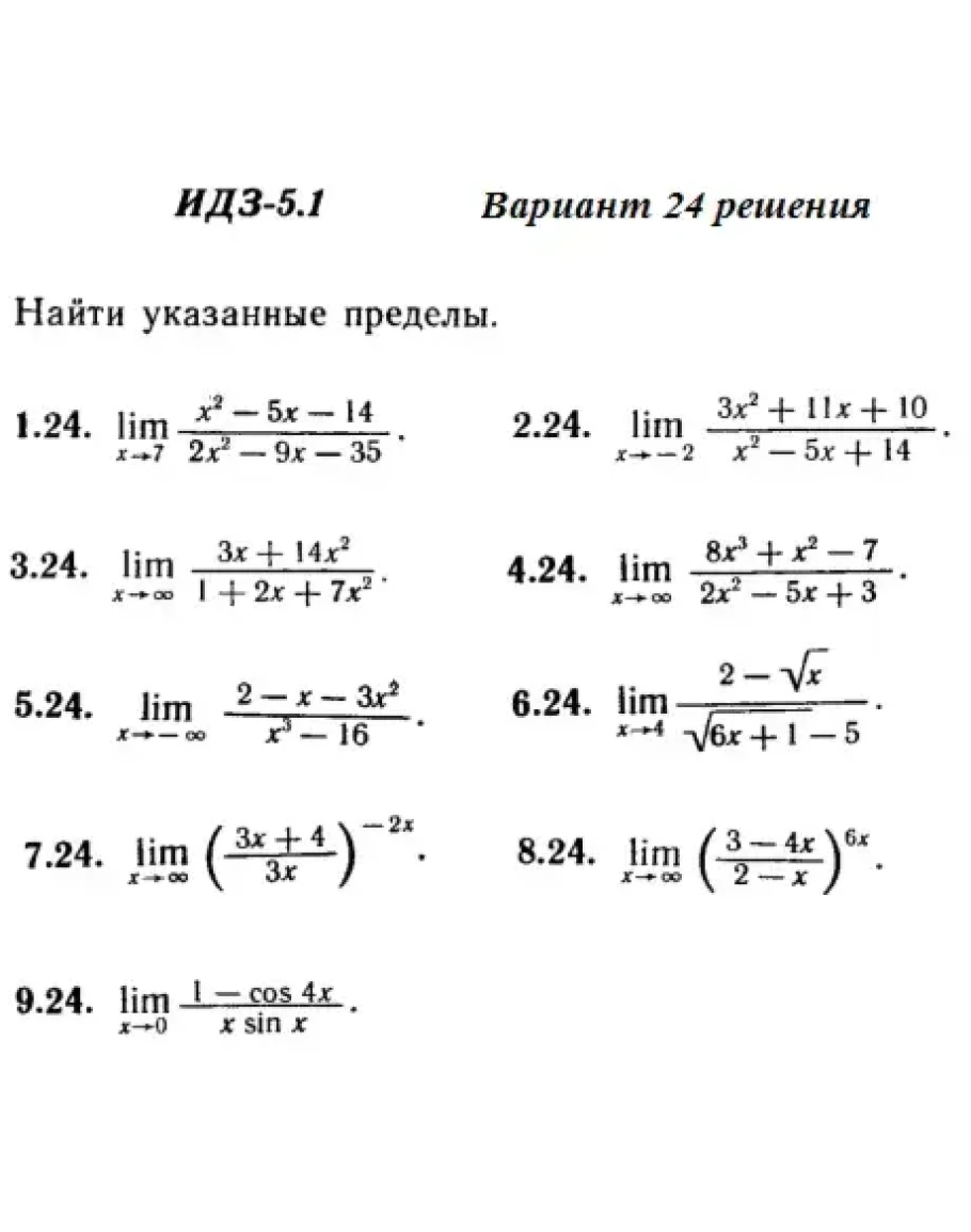 Вариант 24 ИДЗ 5.1 Решебник Рябушко часть 1