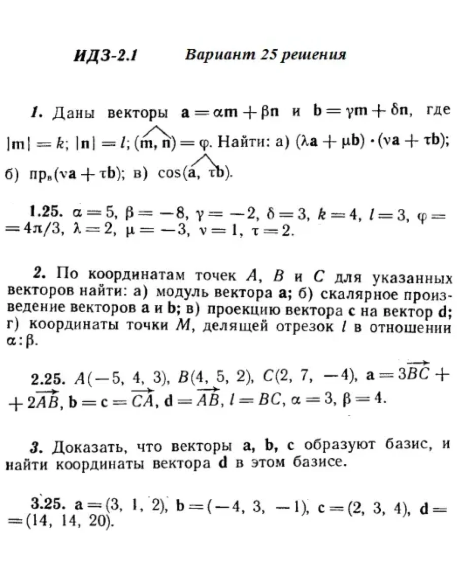 Вариант 25 ИДЗ 2.1 Решебник Рябушко часть 1