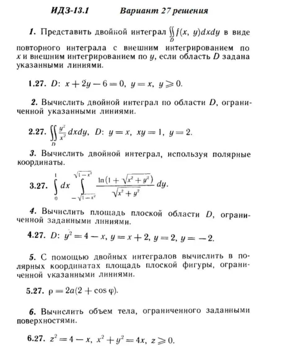 Вариант 27 ИДЗ 13.1 Решебник Рябушко часть 3