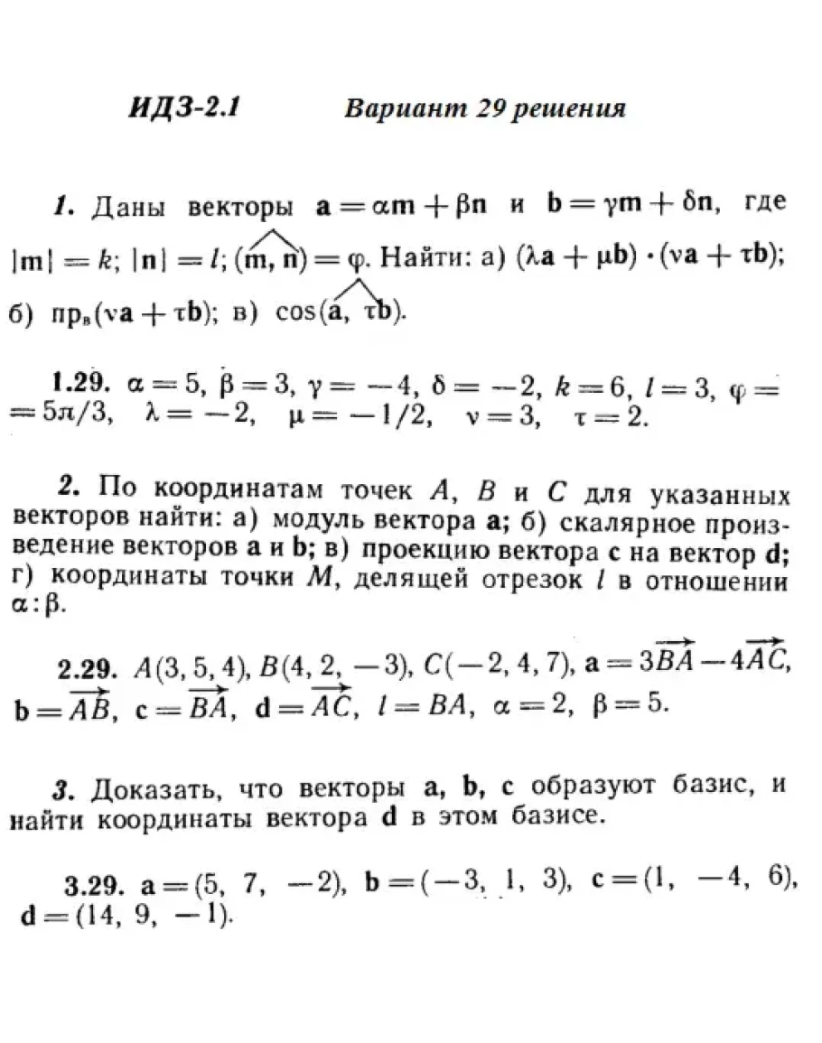 Вариант 29 ИДЗ 2.1 Решебник Рябушко часть 1
