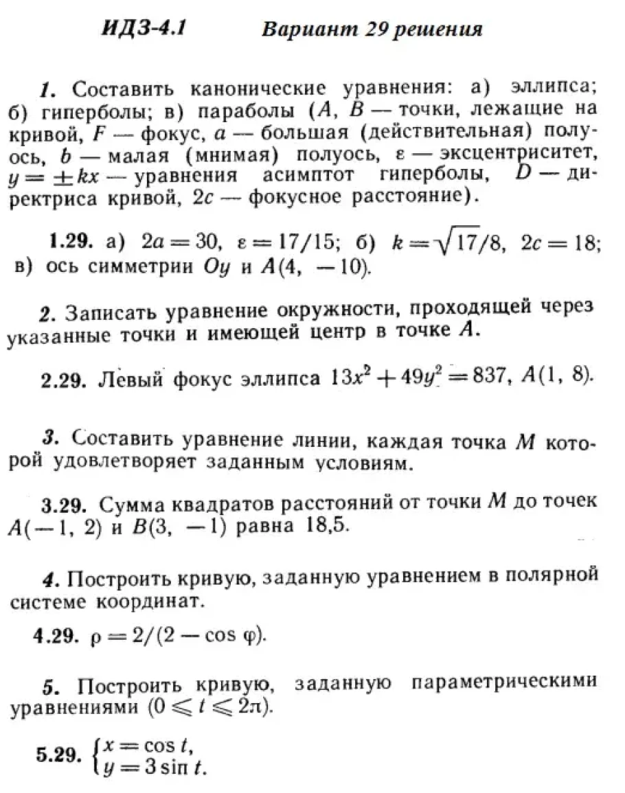 Вариант 29 ИДЗ 4.1 Решебник Рябушко часть 1