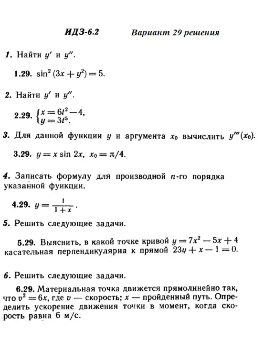 Вариант 29 ИДЗ 6.2 Решебник Рябушко часть 1