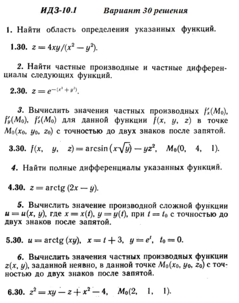 ИДЗ 10.1 Вариант 30 Рябушко (задания на стр. 222-229 в учебнике)