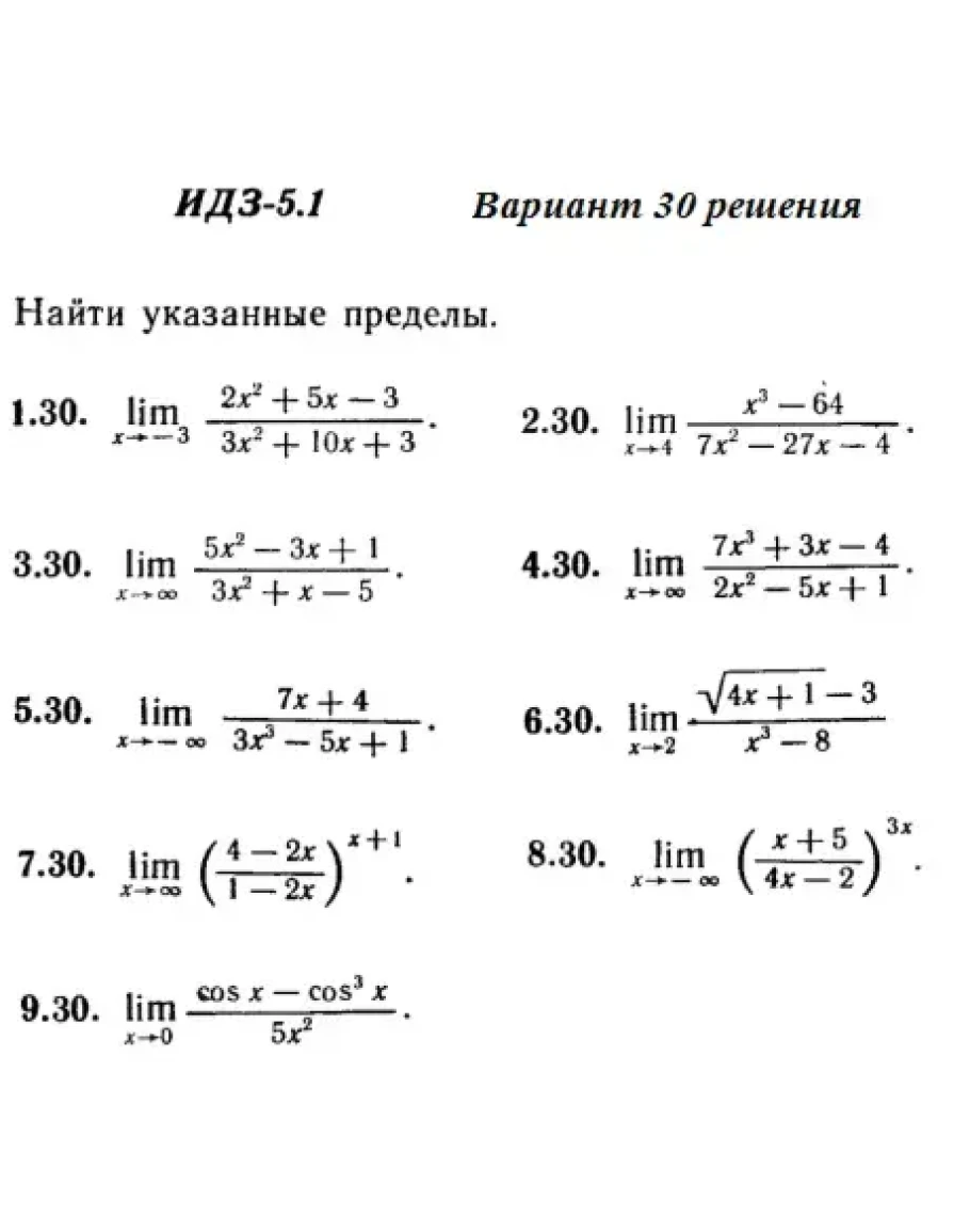 Вариант 30 ИДЗ 5.1 Решебник Рябушко часть 1