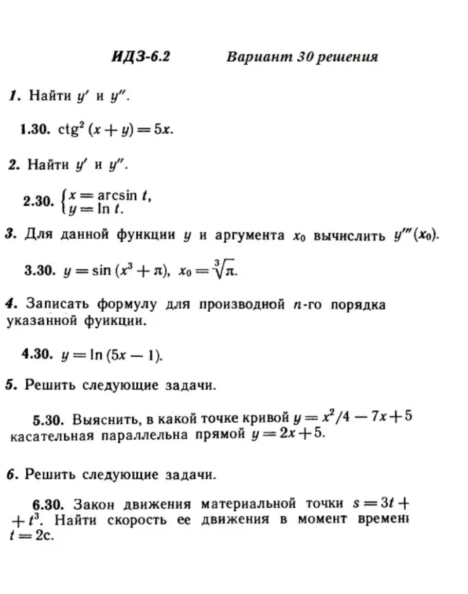 Вариант 30 ИДЗ 6.2 Решебник Рябушко часть 1