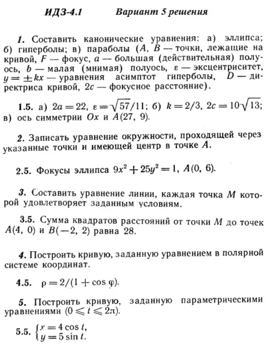 Вариант 5 ИДЗ 4.1 Решебник Рябушко часть 1