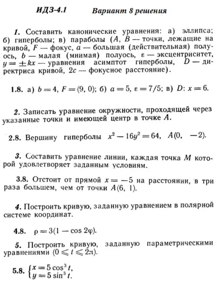 Вариант 8 ИДЗ 4.1 Решебник Рябушко часть 1
