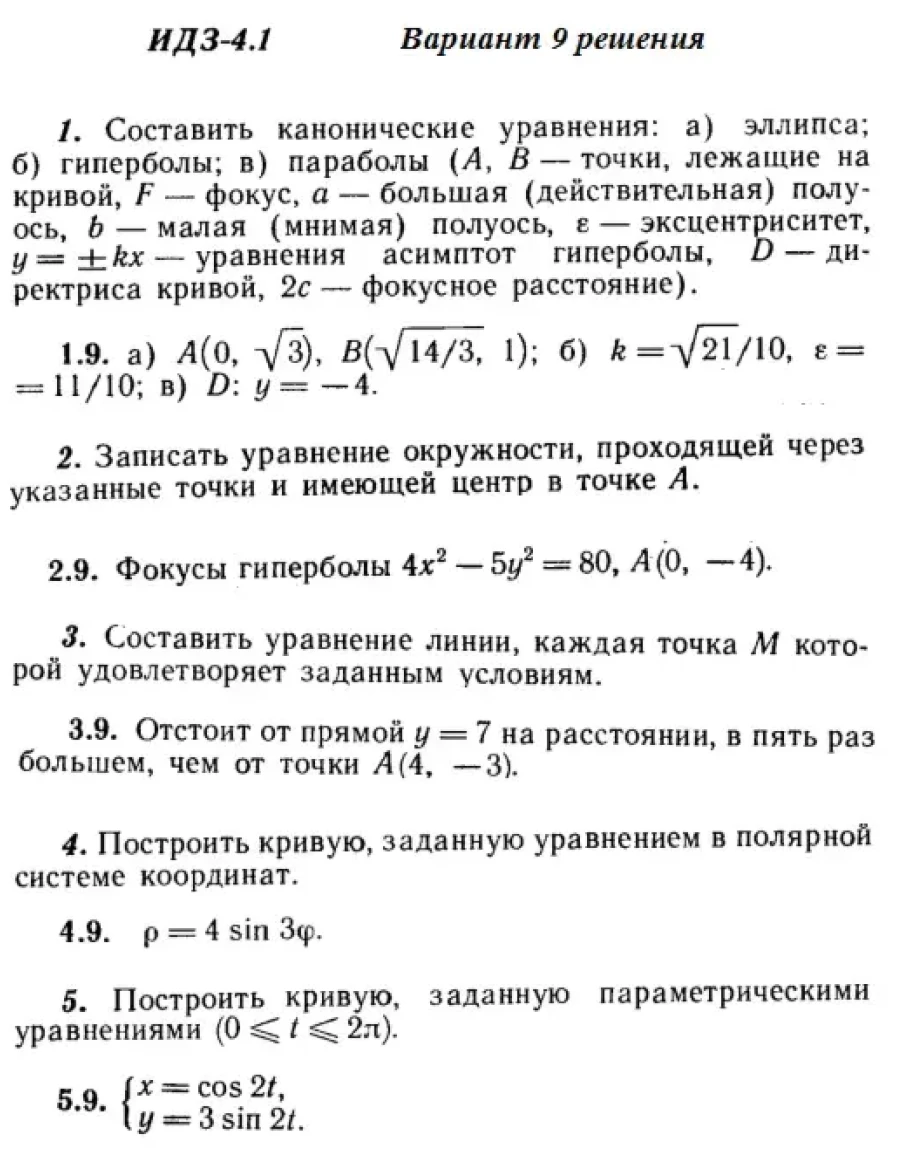 ИДЗ 4.1 Вариант 9 Рябушко (задания на стр. 131-136 в учебнике)