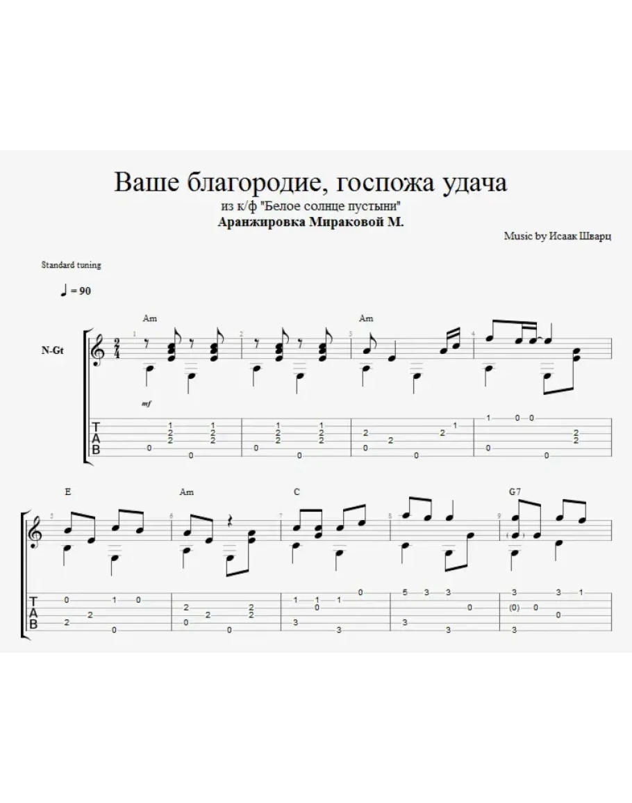 Авторская аранжировка для шестиструнной гитары от Марины Мираковой на композицию "Ваше благородие" из к/ф "Белое солнце пустыни".