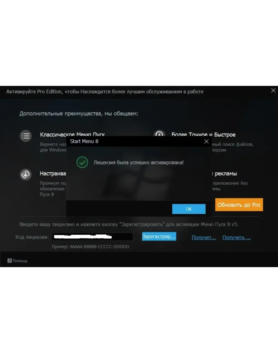 ➤ Лицензионный ключ для Start Menu 8 PRO сроком действия до 26.05.24 года.