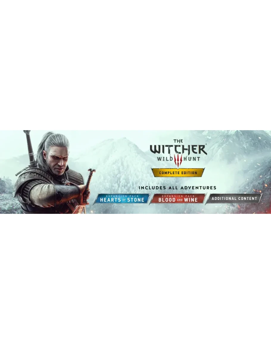 Полное издание содержит основную игру, где вы можете насладиться огромным приключением в открытом мире на 100+ часов, а также сюжетные дополнения «Каменные сердца» и «Кровь и вино», рассчитанные ещё на 50 часов игры.