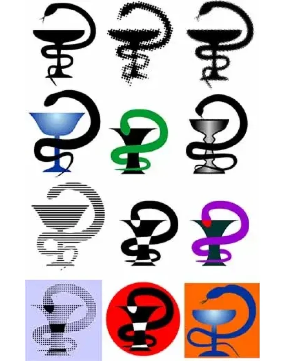 Векторные значки с изображением змеи и чаши, в разных вариантах. В архиве векторные файлы eps и cdr.