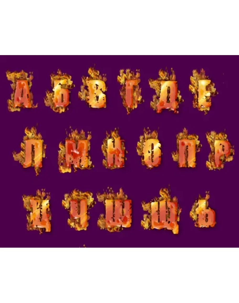 Горящие буквы. Все буквы русского алфавита с анимацией, на черном фоне. Ссылка на прямое скачивание архива, в нем 52 файла gif и все буквы в формате PSD.