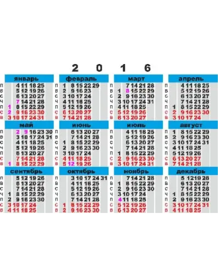Векторная календарная сетка для дизайна карманного календарика на 2016 год. Крупные буквы. Хорошая читаемость. Экономия пространства. Файл eps.