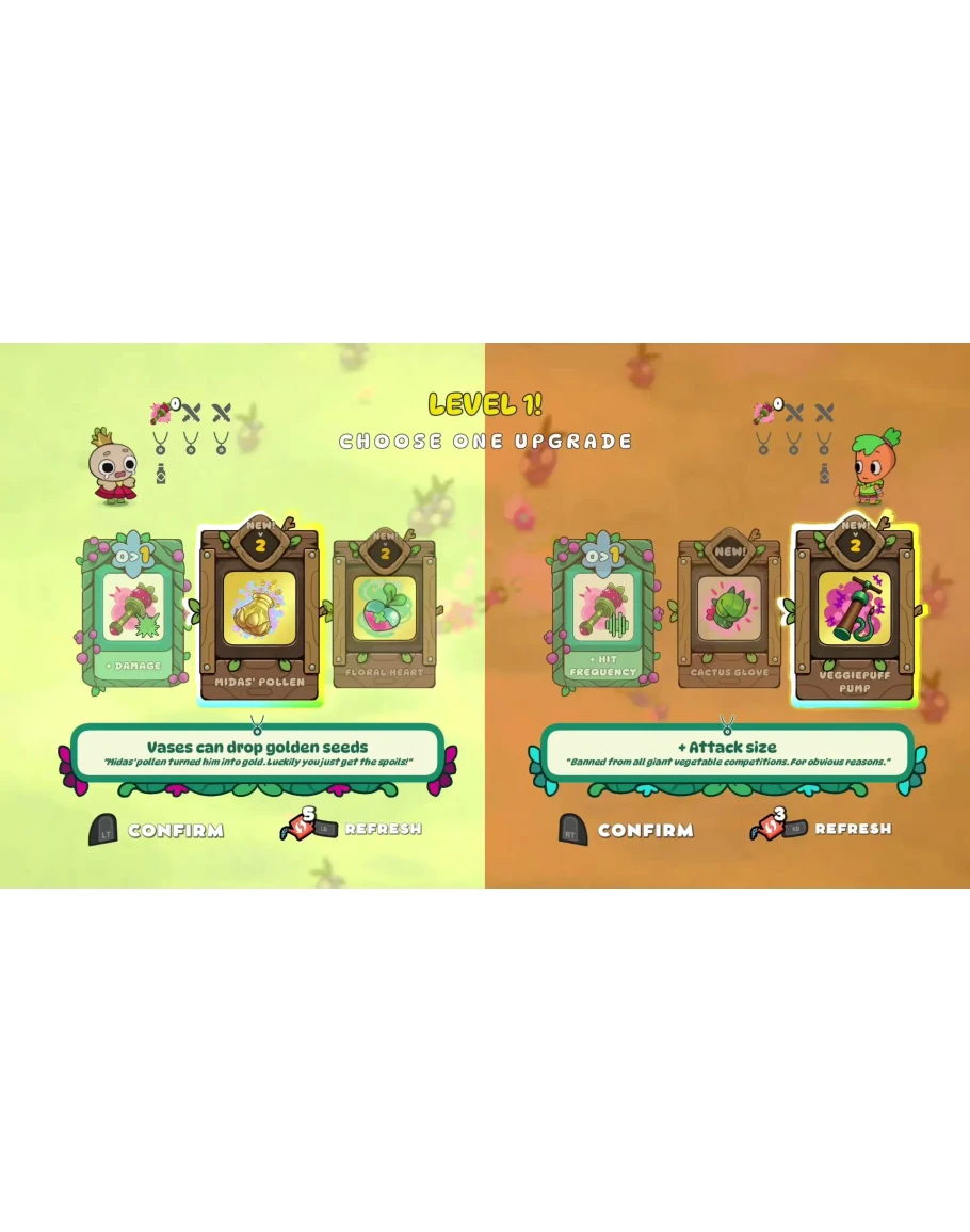 - Оцветенные билды — создавайте невероятные комбо из тыквенных бомб, безерангов, выжигающих всё соусов и многого другого!