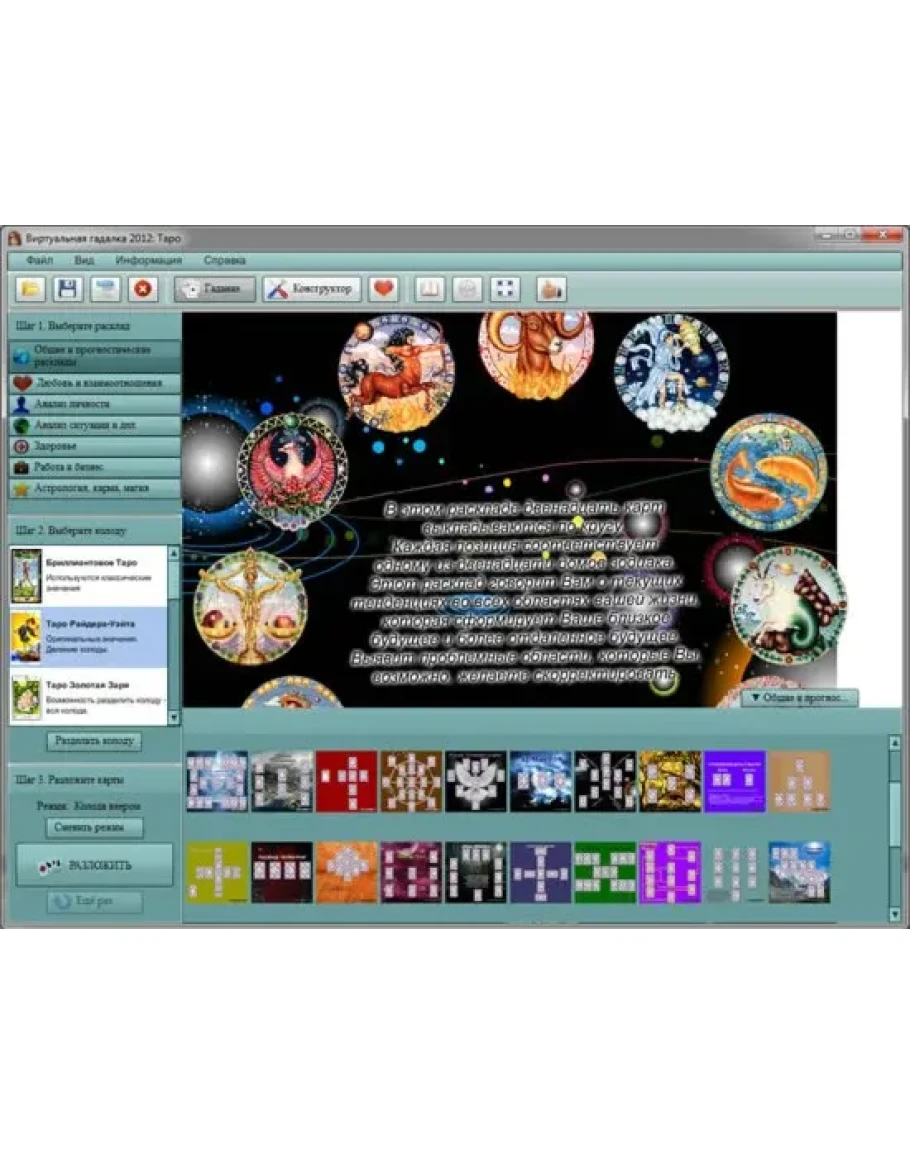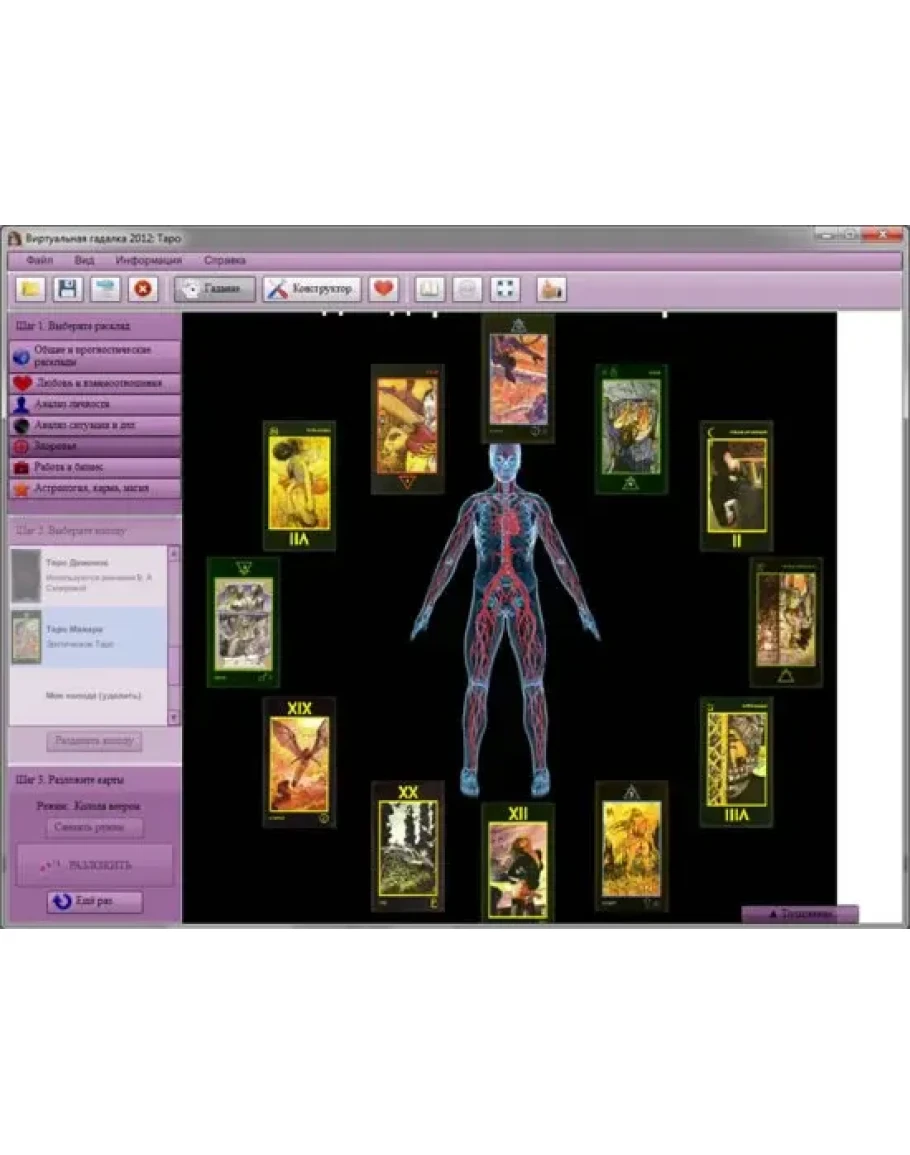 Используйте контакт со своим подсознанием для выбора карт в инновационном и уникальном режиме "Подсознание" делающим виртуальные гадания все более реальными.