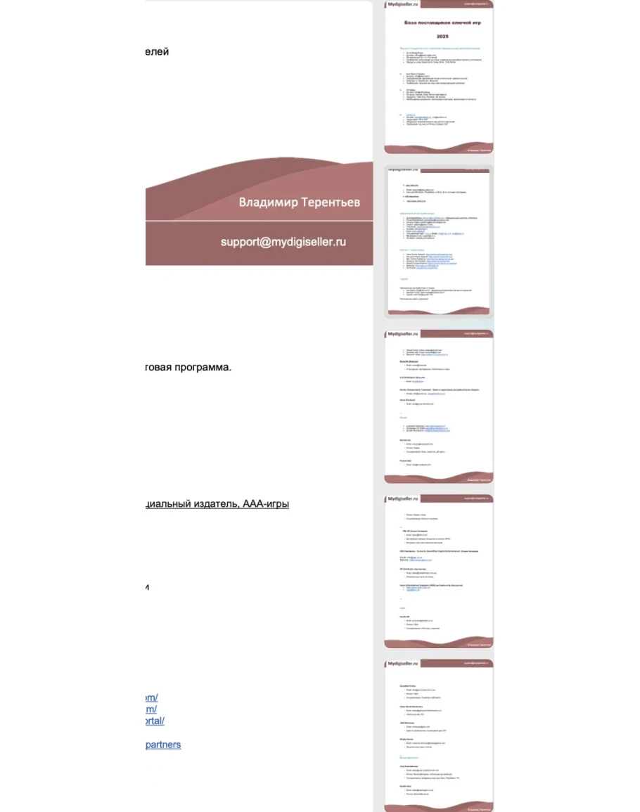 В этом товаре собранна база контактов поставщиков лицензионных Ключей Steam, xbox, psn и других платформ, это компании продающих оптом цифровые ключи активации топовых игр и программ, поставщики ключей для игр стим, origin и других платформ