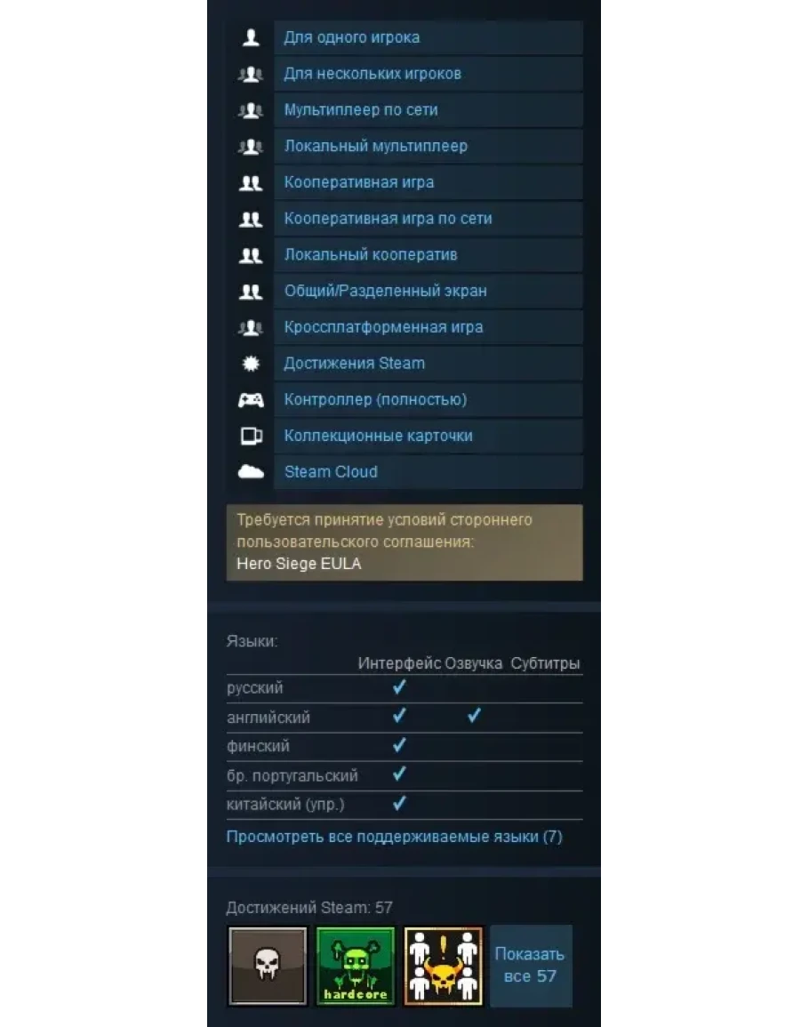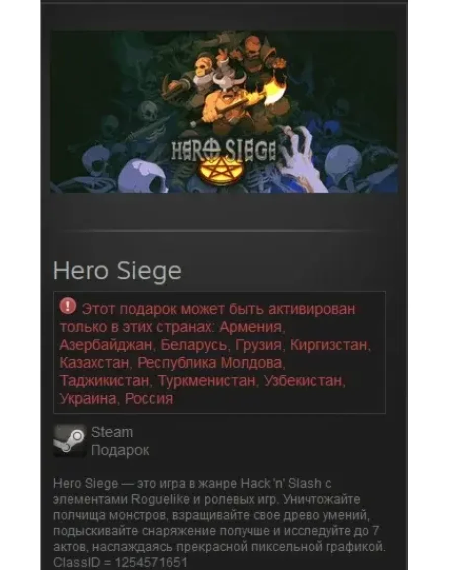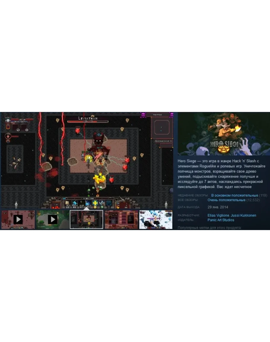 "Hero Siege — это игра в жанре Hack 'n' Slash с элементами Roguelike и ролевых игр. Уничтожайте полчища монстров, взращивайте свое древо умений, подыскивайте снаряжение получше и исследуйте до 7 актов, наслаждаясь прекрасной пиксельной графикой. Вас ждет несчетное количество часов игрового процесса и сетевой режим на 4 игроков!