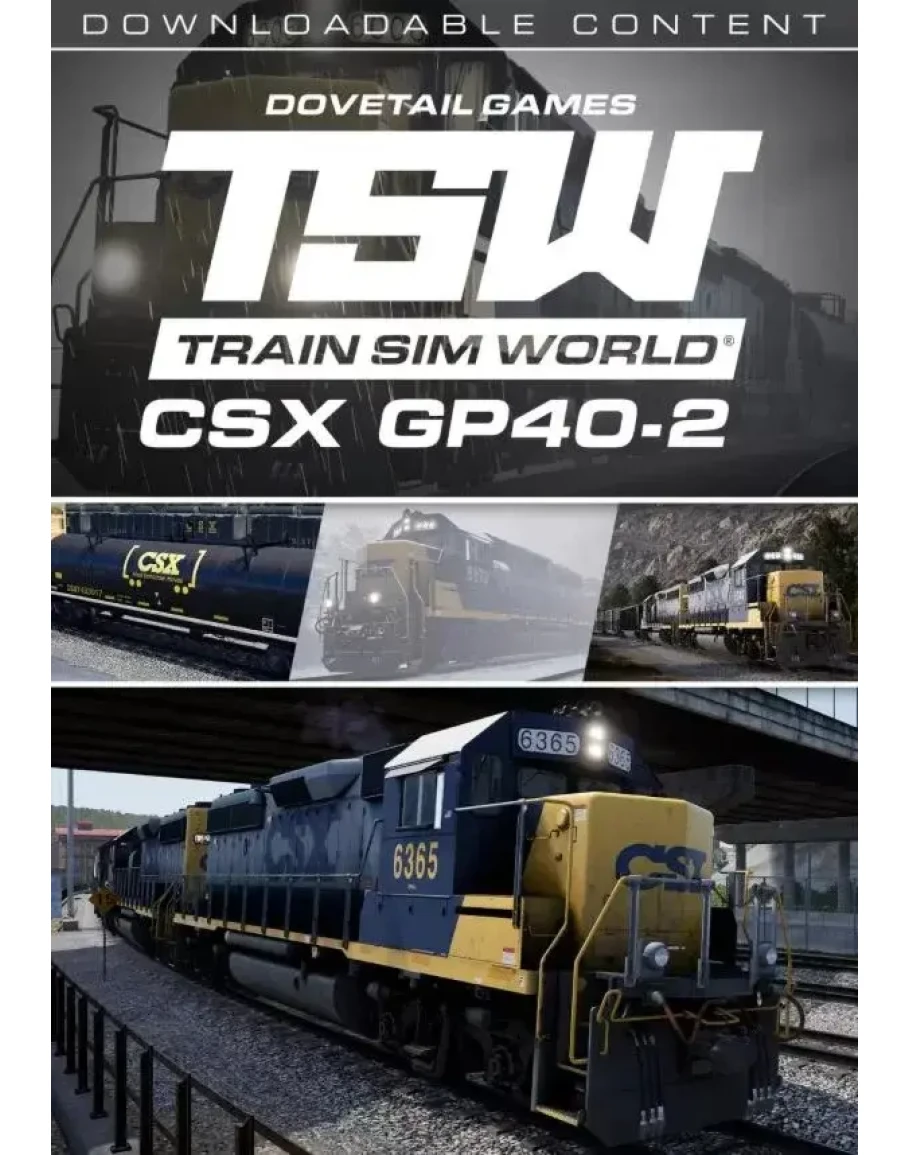 Electro-Motive produced its landmark line of “GP” (General Purpose) locomotives, nicknamed “Geeps,” for more than half a century in a monumental production run that exceeded 16,700 locomotives. Arguably the ultimate edition of the Geep road-switcher was the GP40-2 and now this famed diesel workhorse comes to Train Sim World in classic CSX “YN2” livery! The four-axle (B-B), 3,000-horsepower GP40-2 was constructed by Electro-Motive from 1972 to 1986, sold to 27 original railroad buyers, and enjoyed a production run of 1,143 units. As the “Geep” little sister to the famed six-axle SD40-2, powered by Electro-Motive’s highly successful and reliable V-16 645-series power plant, and equipped with EMD’s “Dash-2” technology, the GP40-2 was considered by many as the best among EMD’s long lineage of Geeps. Today, more than four decades after its introduction, the GP40-2 can still be found working in numbers for the likes of CSX, Norfolk Southern, Union Pacific, Kansas City Southern, and a variety of U. S. regional railroads. Among the buyers of the GP40-2 were 11 railroads that would eventually become (in whole or in part) members of today’s giant CSX system. The railroads that purchased the GP40-2 included the largest CSX predecessors, including Chesapeake & Ohio, Baltimore & Ohio, Seaboard Coast Line, and Louisville & Nashville. During the 1970s, Chessie System (which included B&O, C&O, and Western Maryland) made the GP40-2 its locomotive of choice, purchasing 348 of the versatile diesels. All told, CSX predecessor roads acquired more than 500 GP40-2s. Today, CSX continues to employ a large fleet of veteran GP40-2s in road, local, and switching duties across its system. And now, the successful Electro-Motive GP40-2, in classic CSX “YN2” livery, comes to Train Sim World: CSX Heavy Haul, accompanied by two new modern freight cars, a 73-foot centerbeam flatcar and a CSX 42-foot steel coil car. The Train Sim World CSX Electro-Motive GP40-2 now joins the CSX SD40-2, GP38-2, and GE AC4400CW as authentic motive power to move tonnage over the Sand Patch Grade route! Please Note: Train Sim World: CSX Heavy Haul is required, as a separate purchase, in order to utilise the content featured in this add-on Electro-Motive 3,000 Horsepower GP40-2 diesel road-switcher in classic CSX “Bright Future” YN2 Livery Highly authentic operating characteristics and interactive controls 42-foot Steel Coil Car in CSX branded livery 73-foot Centerbeam Flatcar Includes three challenging scenarios and an interactive tutorial Operable in Service Mode with more than 20 services to take control of Download Size: 140.3MB © 2017 Dovetail Games, a trading name of RailSimulator.com Limited (“DTG”). All rights reserved. "Dovetail Games" is a trademark or registered trademark of Dovetail Games Limited. “Train Sim World” and “SimuGraph” are trademarks or registered trademarks of DTG. Unreal® Engine, © 1998-2017, Epic Games, Inc. All rights reserved. Unreal® is a registered trademark of Epic Games. Portions of this software utilise SimuGraph, SpeedTree® technology (© 2014 Interactive Data Visualization, Inc.). SpeedTree® is a registered trademark of Interactive Data Visualization, Inc. All rights reserved. CSX and other are trademarks owned by CSX Transportation Intellectual Properties, Inc. and are used here with permission. All other copyrights or trademarks are the property of their respective owners. Unauthorised copying, adaptation, rental
