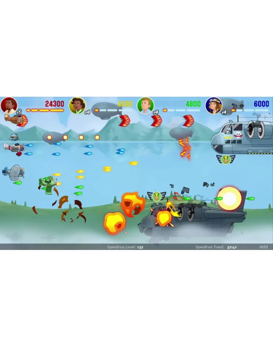 Аркадный шутер возвращается! Объединитесь со всей семьей для взрывных действий, фирменного юмора и захватывающих приключений. Присоединяйтесь к колбасному корпусу бомбардировщиков и выполняйте дерзкие миссии по защите народов Фредонии, Релиштонии, Краутсбурга, Дижон-Терре и других от захватнических амбиций таинственной нации Вега! Особенности: Совместная игра для 4 игроков Сражайтесь в 9 разных средах, каждая со своими типами врагов. Играйте за разных пилотов с уникальными самолетами и способностями Нарисованные от руки спрайты и фоны Эпические сражения с супер-мега-боссами Встроенная поддержка ускоренного прохождения Оригинальный саундтрек композитора Дейла Норта (Wizard of Legend, RWBY: Arrowfell, Dreamscaper) (c) Katsu Entertainment LLC 2022