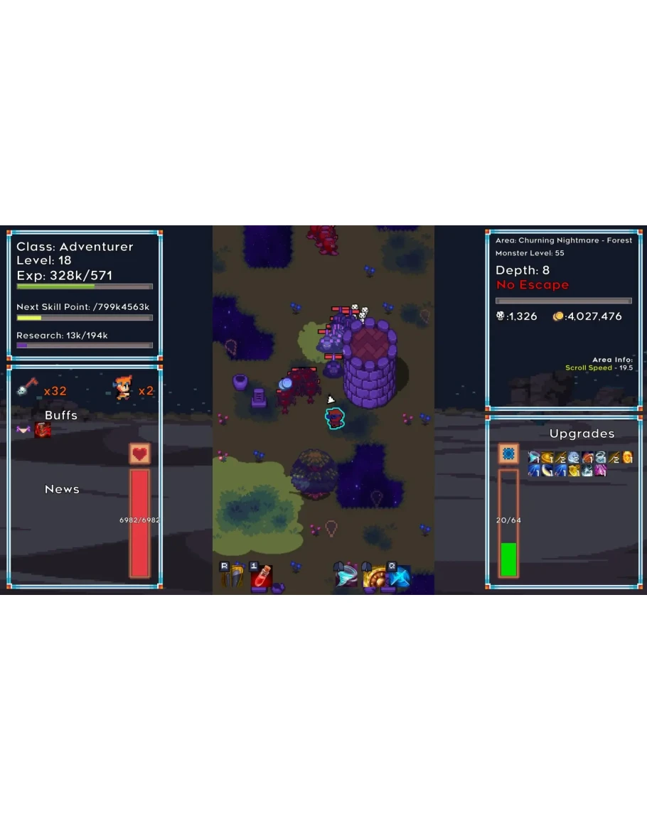 Игра в раннем доступе Что такое Don't Die, Collect Loot? Помимо того, что вам нужно выжить и собирать лут — это аркадный рогалик-RPG с элементами «пулевого ада», созданный для того, чтобы вы воплотили в жизнь самую грандиозную фантазию о силе: стать самым могущественным существом в мире… а затем стать ещё сильнее — без всяких ограничений на то, насколько мощным может стать ваш герой. Пробивайтесь сквозь бесконечные ретро-миры. Собирайте тонны лута. Продавайте его. Растите в силе. А потом растите ещё больше. В Don't Die, Collect Loot не существует понятия «слишком мощный» — есть только ступеньки к величию. ОСОБЕННОСТИ: Выберите один из пяти уникальных классов героев — и возведите его до абсурдных высот могущества и дальше! Комбинируйте способности из дерева навыков, где вас ждут странные, чрезмерно мощные или просто полезные умения — идеально подходящие для уничтожения орд врагов. Экипируйте героя с помощью генератора случайного лута, который может создать как суперзаряженные артефакты, так и полный хлам (никогда не угадаешь!). Иногда попадаются редкие уникальные предметы — и всё это полностью настраивается под вас! Сражайтесь с бесчисленными врагами, которые будут рвать вас на части или топить в граде пуль — в бесконечных процедурно генерируемых фэнтезийных мирах. Настраивайте сложность прямо во время прохождения: делайте игру настолько сложной или, наоборот, лёгкой, насколько хотите. Ведь фантазий о могуществе бывает много — и каждая заслуживает воплощения! Раскройте тайну мира! Да, здесь есть сюжет! Находите загадочные артефакты, соединяйте факты — и узнайте секреты этого застывшего во времени мира… © Dan Marchand and Freedom Games - All Rights Reserved