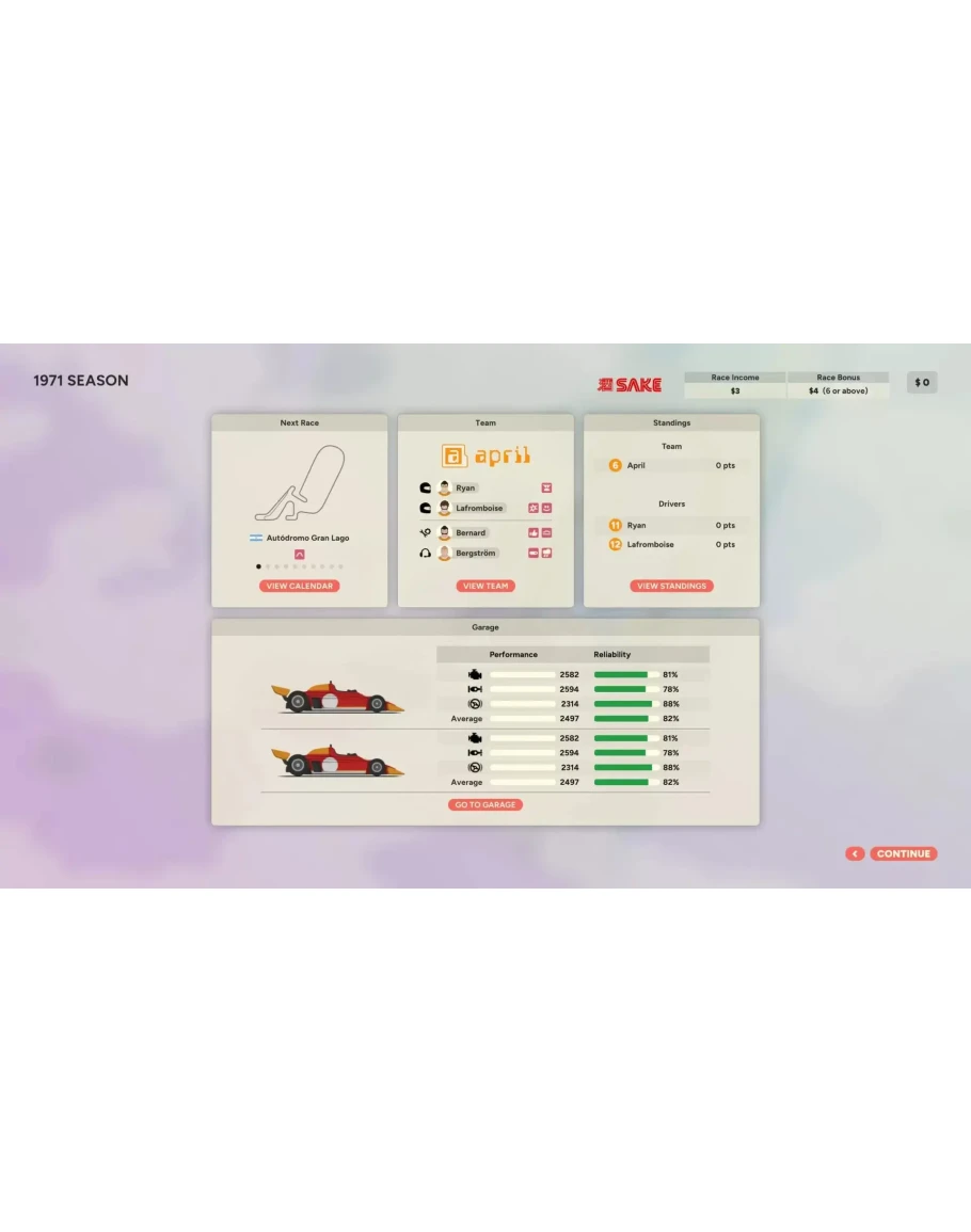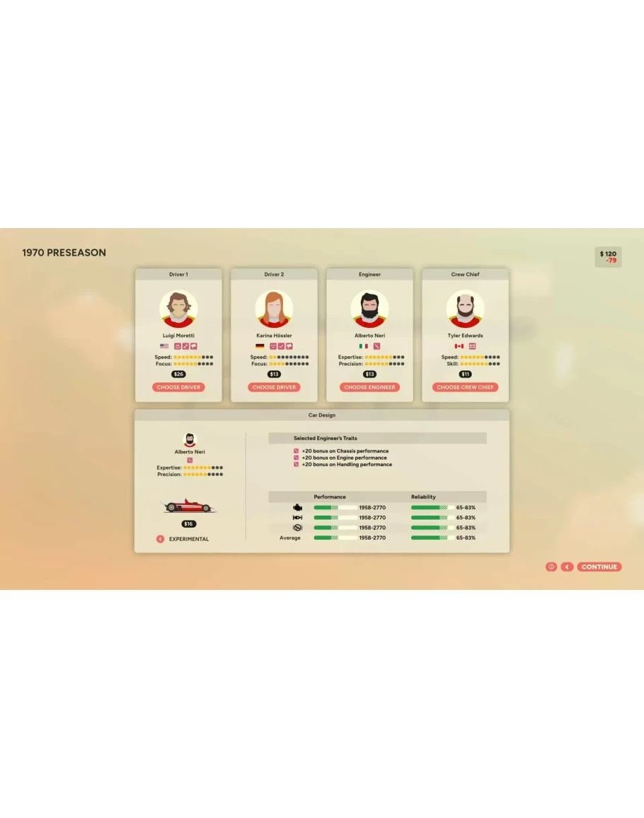 Скорость. Восторг. Смертельная опасность. Золотая Эпоха гонок на открытых колесах вот-вот начнется. Есть ли у вас всё необходимое, чтобы возглавить культовую команду в одно из самых захватывающих десятилетий в истории автоспорта? Как глава команды, вы будете принимать важнейшие решения, которые определят судьбу ваших пилотов и характеристики ваших автомобилей. Разумно распределяйте свой бюджет между пилотами, дополнительным персоналом, разработкой автомобилей и спонсорством, чтобы получить преимущество над конкурентами. Управляйте выдающимися личностями, чтобы максимально эффективно использовать каждого члена вашей команды. Но не забывайте: гонки в эту эпоху непредсказуемы и интенсивны. Golden Lap – это не обычная игра по управлению автоспортом. Меры безопасности совершенствуются, но несчастные случаи всё же случаются. Автомобильные технологии развиваются семимильными шагами. Вы не участвуете в гонках с электронными таблицами, и не существует такой вещи, как гарантированная победа, что делает её еще слаще. Приведите свою команду к поул-позиции Каждый сезон — это возможность вписать свое имя в историю гонок. Независимо от того, превращаете ли вы команду бэкмаркеров в претендента на чемпионство или принимаете на себя давление по сохранению династии. Ваши решения между гонками и чемпионатами будут ключом к вашему наследию. Наймите правильную команду, совершенствуйте свои машины, принимайте верные решения в день гонки и достигайте целей спонсоров. При этом стараясь не разориться! Ваше наследие ждет Создайте команду-победителя включающую в себя водителей, главного инженера и начальника бригады. Каждый сотрудник обладает богатыми личностными качествами, которые влияют на всё: от финансов до характеристик автомобиля и навыков вождения. Гонщик с богатыми родителями может выглядеть так, как будто он спас вашу команду, помогая деньгами, - пока он не окажется заядлым тусовщиком и не будет стоить вам чемпионства, придя уставшим в день гонки. Ваш главный инженер может сбить с толку остальную часть вашей команды своим сварливым поведением, но если он волшебник с гаечным ключом, возможно, оно того стоит? Только вы можете судить, что нужно вашей команде. Минималистический стиль, максимальная стратегия Golden Lap — это минималистский подход к жанру гоночных стратегий с интуитивно понятным пользовательским интерфейсом, который отображает только важную информацию и дает понять, что означает каждое решение, не упрощая при этом принятие решений! Количество возможностей и информации, связанной с автоспортом, может оказаться ошеломляющим для человека, не знакомого с ним. Golden Lap исключает микроменеджмент и позволяет вам сосредоточиться на общей картине, с глубиной там, где это важно. Дайте волю своему творчеству с помощью моддинга Создайте свою гоночную вселенную с нуля, собирая команды, гонщиков и улучшая навыки и характеристики персонала. Добавляйте новых спонсоров, создавайте сложные дизайны машин и открывайте бесконечные возможности! Будь вы опытным моддером или новичком, эта функция даст вам возможность создать уникальный и захватывающий опыт. Присоединяйтесь к сообществу создателей, делитесь своими шедеврами или бросайте вызов другим, создавая собственные чемпионаты. Дорога к славе — в ваших руках! Возглавьте свою команду, в