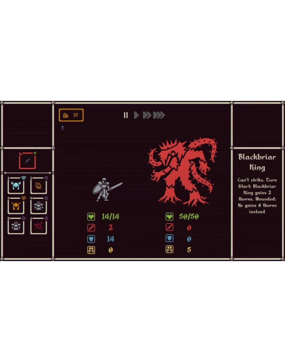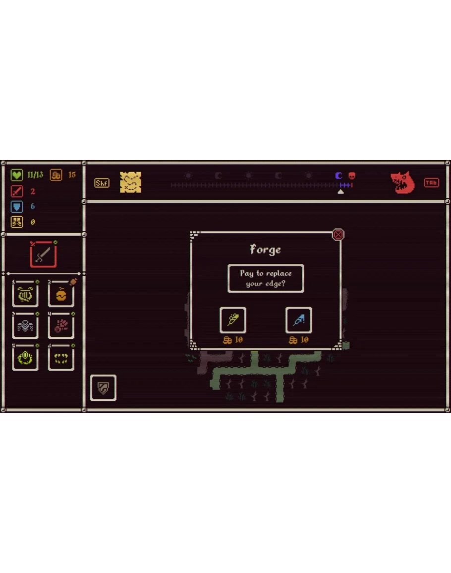 Игра в раннем доступе Давно забытый враг вновь поднял голову: скоро на землю ступит Царь демонов, и если не найдется воителя, готового дать ему отпор, мир неизбежно падет. В этой ролевой игре с элементами процедурной генерации вы будете днем добывать оружие и артефакты, а ночью сражаться с прихвостнями злодея и могучими сущностями из незапамятных эпох. Каждые три дня на охоту выходит новый жуткий слуга Царя, выбранный из 30 с лишним потенциальных боссов. Ваша задача – изучить уникальные способности чудища, чтобы должным образом подготовить своего героя. Раздобудьте оружие и снаряжение, наиболее подходящее для схватки с таким хищником, но остерегайтесь других тварей, ночами рыскающих по окрестностям. Запас времени ограничен, поэтому успеть везде не получится. Будете ли вы затачивать свой клинок в потаенных древних кузнях, за большие деньги покупать сокровенные раритеты у алчных торговцев или искать прочнейшие доспехи и волшебные щиты? Важно подобрать наиболее эффективные средства борьбы с врагом, который угрожает вам сегодня, но при этом не поступиться слишком многим, потому что таких угроз впереди еще много; вы должны будете сразить стражей всех земель, пока перед вами не встанет сам Царь демонов. ГОТОВЬТЕСЬ К СМЕРТИ Каждый босс – это неповторимое испытание, и в вашем распоряжении более 350 предметов, открывающих доступ ко множеству различных стратегий и комбинаций. Когда на вас начнет охоту медведь по прозвищу Острый Коготь, чьи атаки пробивают любую защиту, каким количеством доспехов вы согласитесь пожертвовать в обмен на снаряжение, увеличивающее запас здоровья, скорость или урон? Обычные монстры, подстерегающие путников на дороге, будут постепенно истощать силы вашего героя, и даже если вы одолеете Острого Когтя, следующих трех дней может не хватить на то, чтобы снова раздобыть комплект брони в преддверии очередной страшной битвы. Возможно, взамен доспехов вы отыщете несколько предметов, обеспечивающих прибавку к показателям скорости и атаки, и это позволит очень быстро расправляться с противниками – порой еще до того, как те нанесут первый удар. А затем, если вам повезет набрести на Шафрановое перо, можно будет за счет своей повышенной скорости залечивать раны прямо по ходу боя. Но случись так, что на вас начнет охоту Черный Рыцарь, который скопирует себе вашу силу атаки, нужно будет сделать ставку на броню: если на вас Острая чешуя, отражающая удары, и Рубиновые серьги, каждый второй ход наносящие повреждения врагу, Черный Рыцарь будет получать постоянный урон, при этом не имея возможности усилиться за ваш счет. Однако если в ходе странствий вам попадется волшебное оружие, осмелитесь ли вы взять его с собой? Оно упрочит мощь Черного Рыцаря в грядущей схватке, но станет вам большим подспорьем, если вы ее переживете… К каждому чудищу можно найти не один подход, по-разному сочетая предметы снаряжения, однако вам регулярно придется идти на компромиссы, балансируя между текущими и будущими угрозами; место в вещевом мешке ограничено, поэтому надо выбирать с умом и адаптироваться к ситуации. СРАЖАЙТЕСЬ С ДРУГИМИ ИГРОКАМИ В игре также представлен асинхронный сетевой режим, «Кузница владык». В борьбе за корону поверженного Царя демонов вашему воителю предстоит схлестнуться с героями других игроков, и это противостояние 
