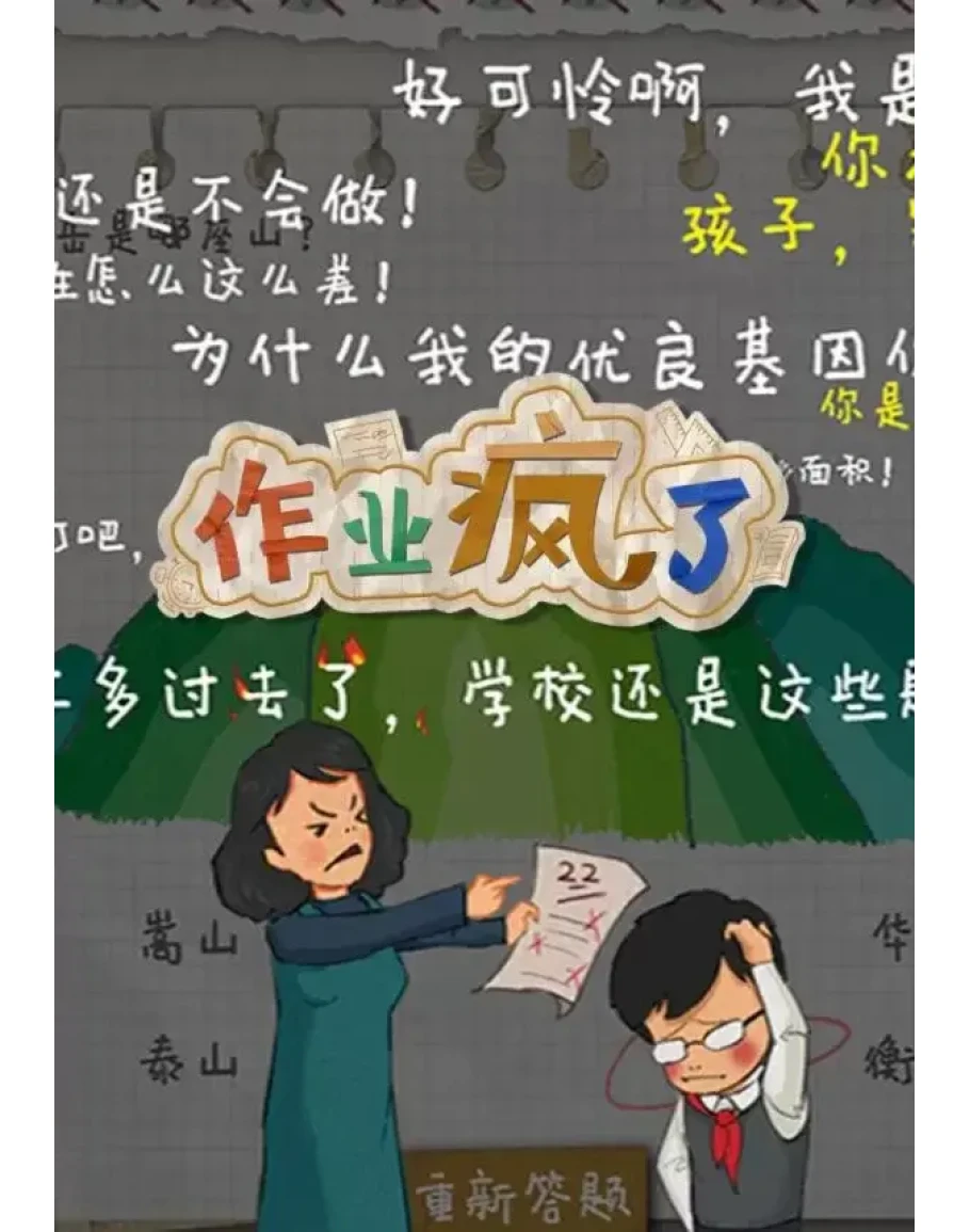 Homework is Crazy is a game that simulates Chinese primary school students doing homework. Nowadays, tutoring primary school students doing their homework has become a problem for parents. You can find many parents complaining the children’s homework is too hard for them on the Internet. If you got a chance to return to your primary school again, face to your homework and the stress from your parents, can you solve all the questions and graduate successfully? Although the game is based on reality, an interesting gameplay is also important. We designed each question as a puzzle game. The game is designed from the first grade to sixth grade, players must pass the final exam to unlock the next grade. We use crayon pencils to create a simple, low-aged art style, it looks simple, fresh and colorful, gives you a charming but also “painful” puzzle solving experience. Challenge the puzzles with various brainwashing music; If you gave a wrong answer or spend too much time on a puzzle, your parents will come to taunting you. Different puzzle types covered language, math, music, art, etc. More other genres are waiting for you to challenge. The mini puzzles in the game have different styles like “fill in the blank”, “connect the line”, “click on the right option” or “drag and drop”, and so on. Very easy to hands on.