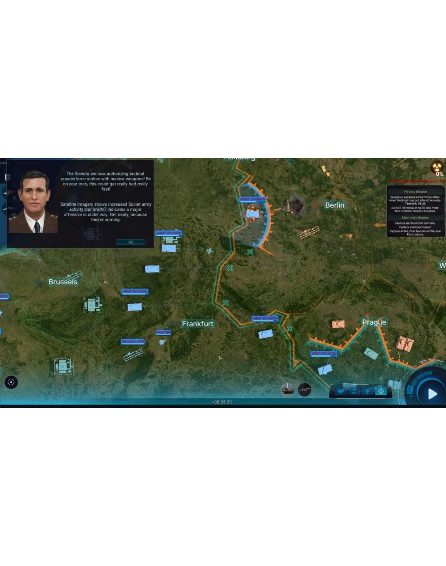 ICBM: Escalation — масштабная стратегия в реальном времени, погружающая игрока в мир глобальной войны, где каждое решение может стереть тонкую грань между выживанием и вымиранием. Командуйте огромными армиями, разрабатывайте передовые технологии и применяйте разрушительное оружие, чтобы обеспечить превосходство своей фракции. С помощью обычных войск или ядерной мощи вам придется либо завоевывать, либо уничтожать врагов, чтобы доминировать на нестабильной глобальной арене. ОБЫЧНЫЕ И ЯДЕРНЫЕ ВОЙНЫ Контролируйте фракцию, занимающую целый континент и создавайте непобедимую военную машину. Стройте ядерный арсенал, исследуйте передовые технологии и разворачивайте сеть ядерных подлодок, стратегических бомбардировщиков и межконтинентальных баллистических ракет, чтобы наносить удары по противникам. Но ядерная война — не единственный путь к триумфу. В ICBM: Escalation вам доступны новые условия победы в традиционной войне. Вы можете вторгаться на вражеские территории, истощать ресурсы противника и заставлять его сдаться с помощью тактического превосходства. Два новых режима — «Конфликт» и «Завоевание» — добавляют стратегической глубины в сравнении с быстрым режимом «Блиц», который больше напоминает оригинальную ICBM. ИССЛЕДОВАНИЯ И ДИПЛОМАТИЯ Играйте в нескольких технологических эпохах: от ранних технологий Холодной войны до передовых разработок будущего, включая военные стелс-корабли и орбитальное оружие. Обновленная система дипломатии добавляет в игру новый слой интриг, позволяя заключать исследовательские соглашения, договариваться о прекращении огня и вести переговоры о захваченных территориях. Мировые дипломатические акты, такие как международные договоры о запрете определенных видов оружия, открывают стратегические возможности, способные изменить ход глобального конфликта. РАЗНООБРАЗИЕ ИГРОВЫХ РЕЖИМОВ В ICBM: Escalation есть различные режимы для разных стилей игры. «Конфликт» предлагает постепенное наращивание конфликта — от обычных стычек до полномасштабной ядерной войны, тогда как «Завоевание» фокусируется на долгосрочной стратегии, балансировании на грани и тактическом мастерстве. Любителям острой динамики подойдет «Блиц», который предполагает быстрые и прямые ядерные столкновения, сохраняя дух оригинала. Вас ждет насыщенная одиночная кампания, охватывающая десятилетия истории — от Корейской войны до спекулятивных сценариев будущего, где ваши решения влияют на исход глобального конфликта. В многопользовательском режиме вы можете сражаться против 10 игроков, борясь за доминирование и повышая свой рейтинг. ОСНОВНЫЕ ОСОБЕННОСТИ Смертоносное сочетание обычной и ядерной войн. Высокая реиграбельность с разнообразием стратегий и юнитов. Разрушительное оружие массового поражения, включая химические бомбы и разделяющиеся боеголовки. Детализированная 3D-карта с сотнями городов и стратегических целей. Динамичная дипломатия, позволяющая формировать свой мировой порядок. Многопользовательский режим до 10 игроков с рейтинговыми матчами. Одиночная кампания с историческими и футуристичными миссиями. Полная поддержка модификаций от сообщества. © 2024 Slitherine Ltd. All Rights Reserved. ICBM: Escalation, Slitherine Ltd. and their Logos are all trademarks of Slitherine Ltd. Developed by SoftWarWare and Slitherine Ltd. All other marks and trademarks are the property of their respective owners.