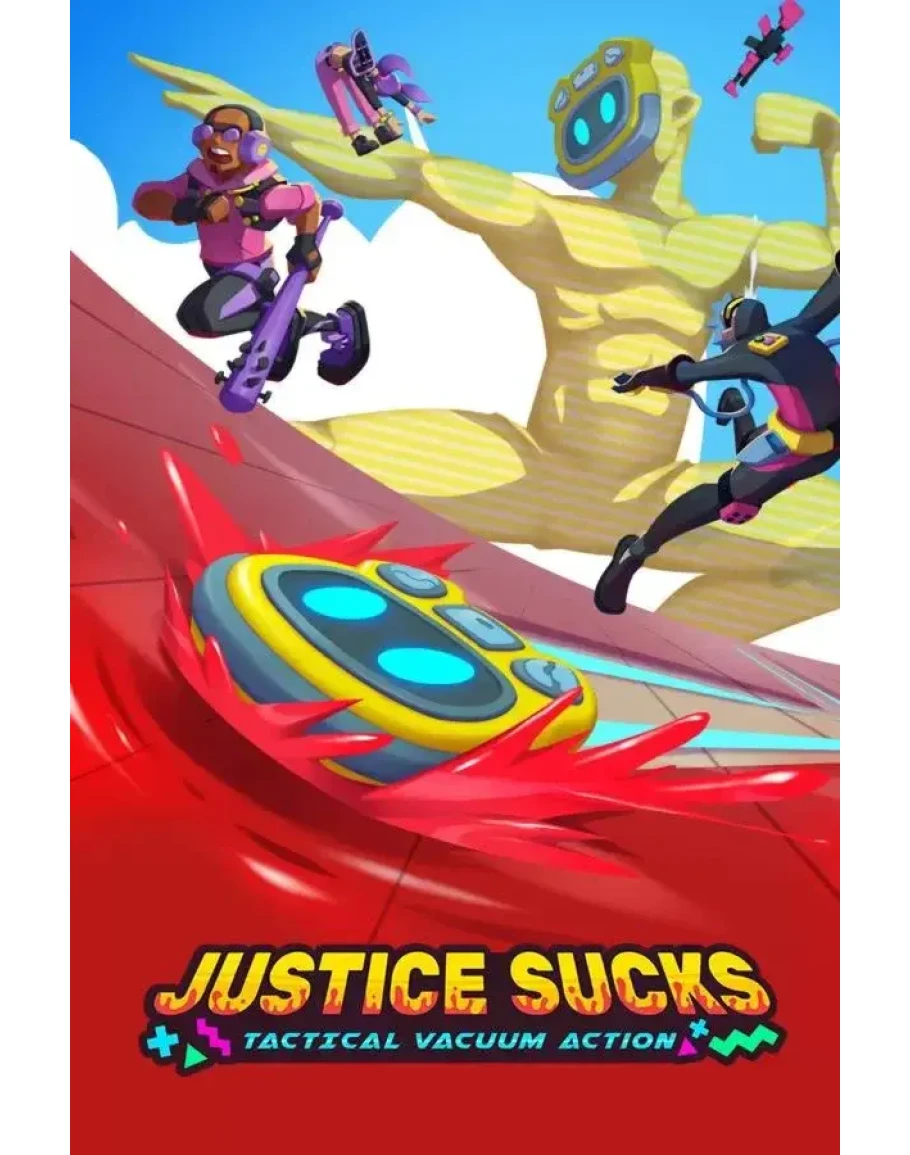 In JUSTICE SUCKS, you play as Dusty, a killer robot vacuum on a quest for vengeance.. When burglars break into the McClean home, Dusty must go rogue to protect his family. Unfortunately, his heroic actions attract the attention of FamilyCorp, and a fight with the warranty squad sends Dusty flying into the living room TV. Waking up In the TV dimension, Dusty must hack, hide and suck his way to freedom. Join forces with your fighting spirit, Sexy McClean, and develop deadly abilities to help him defeat FamilyCorp and save his family! MAKE A MESS Suck up objects to use against your enemies, destroying them with deadly satisfaction. EAT THEIR BLOOD Do your duties as a vacuum cleaner and clean up the mess. Munch on bodies, suck up blood, and eat all the leftovers. UNLEASH DEVASTATING POWERS Consume the blood of your enemies to fuel Dusty’s deadly powers, slamming, ramming, and dancing your way through waves of FamilyCorp agents. STAY HIDDEN Use your low profile to hide under furniture, avoid detection, and perform powerful stealth attacks on unsuspecting enemies. HACK THE WORLD Turn the environment against your foes by hacking smart devices and turning them into deadly traps. MEET POWERFUL ALLIES Befriend animal allies and destroy Dusty’s enemies as an unstoppable team.