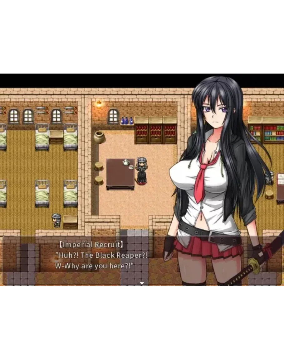 Классическая ролевая игра о путешествии по спасению людей империи Омега! больше десяти часов геймплея японская ролевая игра от ветеранов додзин ПЕРСОНАЖИ Опытная убийца со 100% вероятностью успеха в миссиях. Известна как Черный Жнец балгодаря своему цвету волос и количеству убийств. Несмотря на то, что по внешности ее можно отнести к уроженке Востока, она не помнит места своего рождения. У нее нет особого интереса к другим людям, особенно к противоположному полу. Тем не менее однажды, когда она, будучи послушницей, была тяжело ранена во время миссии, она отдала свое сердце молодому человеку, который ее спас. Они стали любовниками, хотя она скрывала от него, что является убийцей. СЮЖЕТ Народ Империи Омега страдает под гнетом правления императора Герцога. Вопиющее насилие – и, возможно, смерть – ожидает любого, кто попытается бросить вызов сокрушительно тяжелым налогам… Население в целом живет в страхе перед своими имперскими повелителями. Однако немногие смельчаки восстали, чтобы уничтожить империю — движение сопротивления Ψ (Пси), возглавляемое лидером отступников Эдгаром. На первый взгляд, они работают как мастера на все руки, помогая нуждающимся гражданам. Под поверхностью основной деятельностью организации являются «чистки», то есть убийства, как имперских чиновников, так и преступников. Следующим может стать любой, кто приносит страдания населению. Одна из участниц Ψ — красивая темноволосая женщина, которая вряд ли похожа на убийцу. Со своим любимым мечом Оборозуки, который она получила от Эдгара, Хадзуки готова снова встретиться с империей...