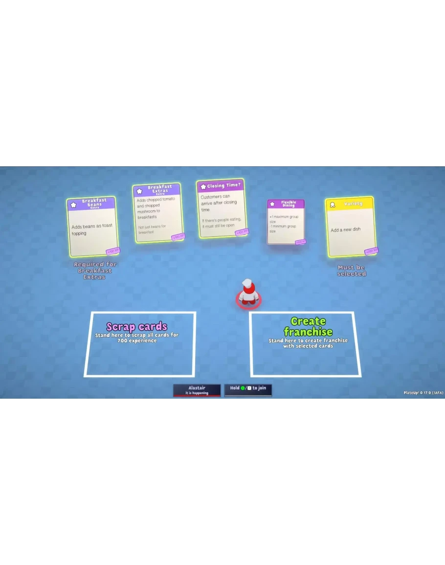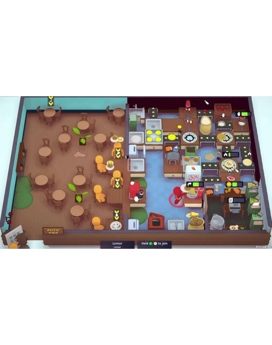 PlateUp! — это необычный игровой «винегрет» в духе roguelite, в котором кухонная суматоха и обязанности ресторатора удачно гармонируют со стратегическим планированием и развитием. Вы строите ресторан и управляете им с нуля, выбираете блюда, покупаете и размещаете кухонные приборы, которые, возможно, вам удастся подключить друг к другу для создания масштабных автоматических кухонь, готовите еду и обслуживаете клиентов — и всё это вы можете делать в компании, включающей до четырех игроков. Игроки могут свободно разрабатывать дизайн своего ресторана, который будет расширяться и расти день ото дня, а по мере прогресса разблокировать новый контент и челленджи. Получится ли у вас готовить, обслуживать клиентов и управлять своим рестораном на протяжении 15 совершенно сумасшедших дней, чтобы разблокировать принципиально новую франшизу? Классическая совместная кулинарная игра с обширным ассортиментом основных блюд, гарниров, соусов, топпингов, десертов и закусок. Выбирайте оборудование, обустраивайте кухню, продумывайте меню и оформляйте блюда. От обжигающих супов до изысканных салатов, от нежных стейков до сытных пирогов — каждый найдет что-то свое. Следите за зоной обслуживания гостей: рассаживайте посетителей, выполняйте их заказы и не давайте им потерять терпение. Оборудуйте свой ресторан так, чтобы угождать самым неусидчивым гостям и подавать им именно то, что нужно, в нужный момент. Выступайте единым кулинарным фронтом вместе со своими друзьями или прославьтесь, работая в одиночку. Вырывайтесь вперед и поднимайте свою франшизу на новые высоты в новых локациях, чтобы разблокировать дополнительные возможности и улучшения. Модернизируйте и обустраивайте ресторан по своему вкусу: когда ресторан закрывается, наступает время для планирования! Выбирайте новое оборудование, которое стоит приобрести, и размещайте его в соответствии со своим проектом. Стремитесь к высоким технологиям? Установите турбопечи, запустите конвейеры и вступите на путь роботизированной кухни будущего. Хотите чего-то слегка... необычного? Соберите свою коллекцию произведений искусства, раскрасьте стены, наймите друга в качестве метрдотеля и будьте готовы открыть двери в мир высокой кухни. Вырывайтесь вперед и начинайте всё сначала в новых локациях, которые позволят разблокировать дополнительные возможности и улучшения. Сделайте свой бренд известным в мире авторской кухни или прокачайте франшизу быстрого питания. Каждый ресторан создается на базе процедурной генерации, его посещают отдельные гости, в нем создается свой климат и свои условия. Возвращайтесь в штаб-квартиру своей франшизы, чтобы просмотреть достижения, настроить персонажей и обновить свое оборудование. И вперед, навстречу новому приключению! ©2022, It's happening. Licensed by Yogscast Games