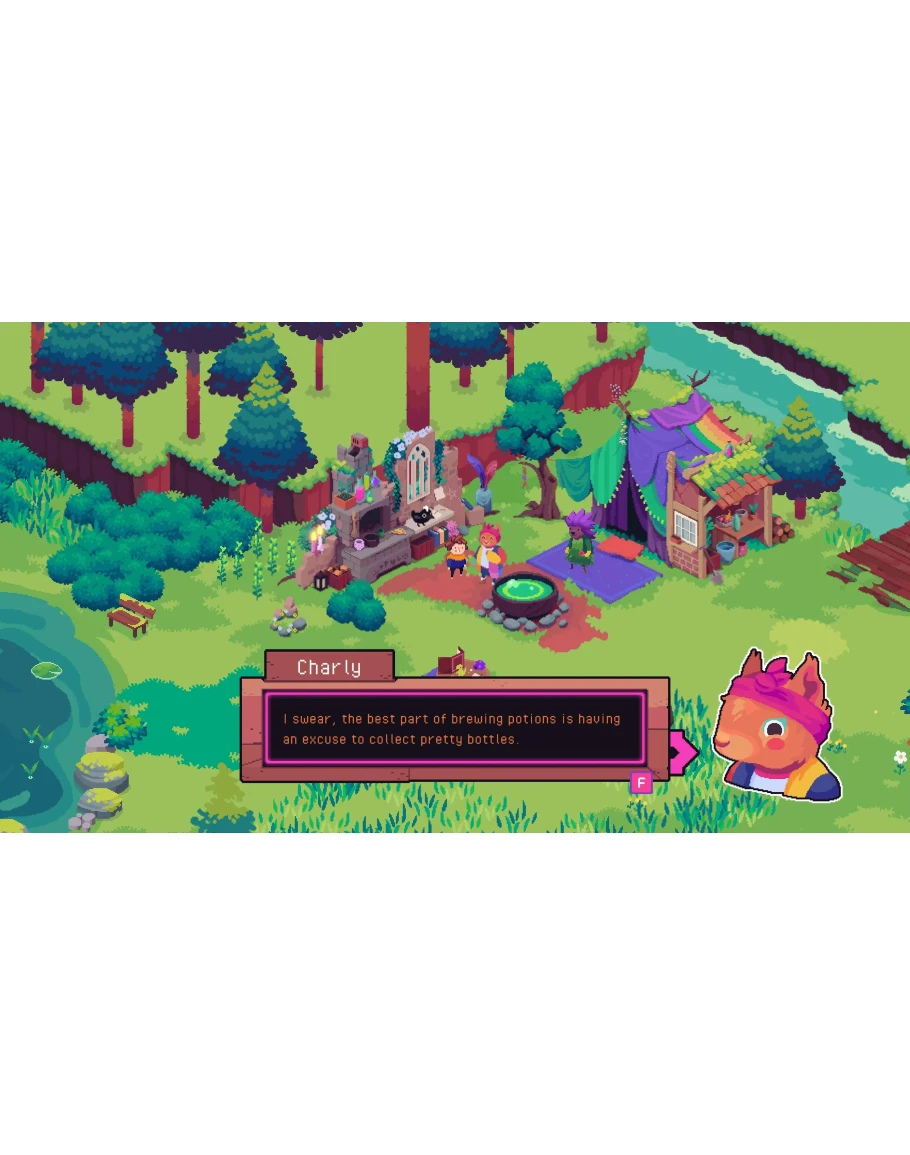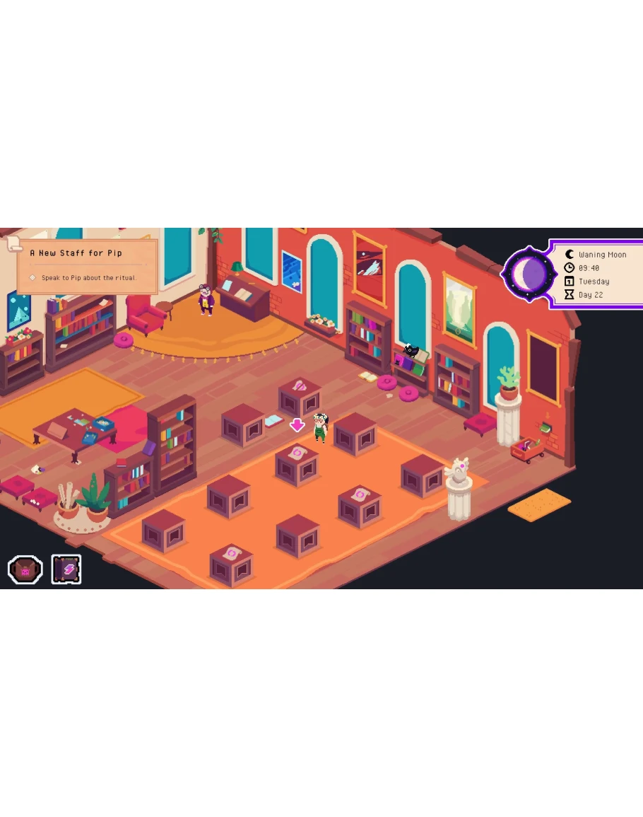Ritual of Raven is a cozy, story-based farming sim - but you don’t do the farming yourself! Instead, you collect and enchant Arcana Constructs to grow your magical herb garden. In a world where different traditions of magic live side by side, ambitious plans were made to open portals between worlds, but the ritual went terribly wrong. Those involved each lost something most precious to them, and the portals became unstable, randomly spitting out new arrivals into the world. After falling through one of these mysterious portals yourself, you encounter the local witch Sage, who decides you’re the best person to help her in her quest. Taken under her wing as an apprentice, you’ll be able to help search for her missing Familiar, Flufferstoop. With your cheeky Familiar Raven by your side, you’ll gather the knowledge and ingredients to perform powerful rituals. Fill your Book of Shadows and find the Portal Keepers to bring stability to the portals that have been causing trouble for the village. Enchanting Arcana Constructs Did you know, harvesting lavender with your hands completely destroys its magical properties? Fear not, that’s why Arcana Constructs are there to do all your magical gardening for you! Using a mystical deck of cards, you’ll be able to enchant them to plow, sow seeds, water, and harvest them for you. Collect all 22 Constructs and create a thriving herb garden. Meet your new neighbors Make friends with the quirky community of outcasts and help them grow closer to each other. Get to know their unique backstories and trade with them for valuable ingredients. Moon... Magic! Learn how your harvest changes in each moon phase and use the moon's power to charge your crystals. Discover how to command the moon phases to suit your needs at the moon shrine. There’s a lot more to the moon than meets the eye. Decorate your world After finding yourself in a brand-new land, it's important to make it feel as homely as possible. Take a trip to Pistachio’s and get creative with their stock of out-of-this-world furniture to decorate the village and your farm. Complete your collections Let your Construct extract and fuse lots of different crystals, fill the library, and throw your fishing claw into the portals to pull out artifacts from different worlds! From the developers who brought you Sticky Business! Funded by MFG Baden-Württemberg Ritual of Raven © Spellgarden Games, published under licence by Team17 Digital Limited.