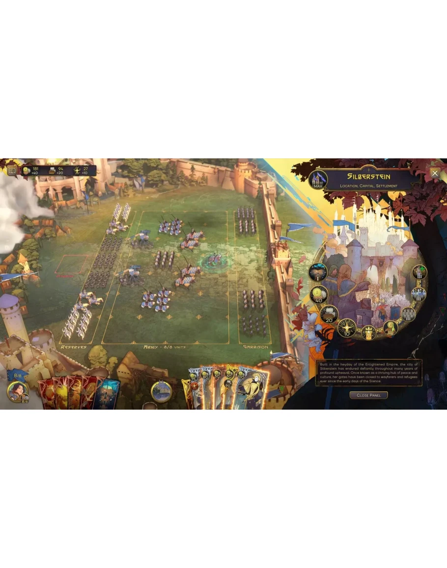 Отправьтесь в эпическое путешествие и ведите свой народ к новым горизонтам в Songs of Silence: пошаговой стратегической игре с боями в реальном времени, где каждое ваше решение влияет на судьбу королевства. Командуйте грозными героями, ведите в бой могущественные армии и овладейте искусством тактической войны. Играйте в сюжетную кампанию, быстрые случайные схватки в одиночном режиме или по сети, либо сражайтесь на тщательно проработанных картах сценариев. 15+ часов сюжетной кампании Погрузитесь в захватывающую одиночную кампанию, разработанную как для новичков, так и для опытных стратегов. 8 карт кампании – Ведите королеву Лорелай и её народ к новому дому, вырвитесь из хватки Схизмы и попытайтесь преодолеть разрыв между враждующими цивилизациями. 3 уровня сложности – Новичок в стратегии? Насладитесь спокойной игрой в режиме истории. Или испытайте свои силы на высоких уровнях сложности с эксклюзивными достижениями и квестами. Побочные задания и секреты – Встречайте необычных персонажей и находите скрытые сокровища… Бесконечные схватки Проверьте свои стратегические навыки в 100+ случайных схватках, предлагающих бесконечное множество возможностей для повторного прохождения, как в одиночном режиме, так и кооперативном или соревновательном по сети. Разнообразные настройки карт – Выбирайте из 3 размеров (S, M, L) и 2 форматов (односторонний или двусторонний) для создания индивидуального тактического опыта. Гибкие стили игры – участвуйте в сражениях по принципу "Каждый сам за себя" или в кооперативных битвах, до 6 игроков! Модификаторы игрового процесса – Меняйте правила с помощью «Жребиев». Сценарии – новый режим игры! Погрузитесь в уникальные карты, созданные для оригинального и нелинейного игрового опыта. Новые сюжетные линии – Встречайте новых персонажей и раскрывайте истории, которые дополняют основную кампанию! Испытания – Выполняйте задачи разного уровня сложности для улучшенной реиграбельности. Постоянное обновление контента – Новые сценарии будут регулярно добавляться, расширяя стратегические возможности игры! Уникальная эстетика Погрузитесь в мир, вдохновленный стилем ар-нуво, где богатство и красота поднимают стратегический опыт на новый уровень. Разнообразие фракций – 3 уникальные фракции, 13 классов героев и 37 вариаций. Глубокая тактическая составляющая – Задействуйте 113 отрядов, используйте 38+ артефактов для усиления своих армий и более 150 навыков, чтобы влиять на сражения, армии и управление королевством. Яркий дизайн мира – Исследуйте 22 уникальных локации в разных биомах, каждая из которых предлагает стратегические преимущества, такие как бонусы ресурсов, лечение отрядов и видимость тумана войны. © 2025 Chimera Entertainment GmbH