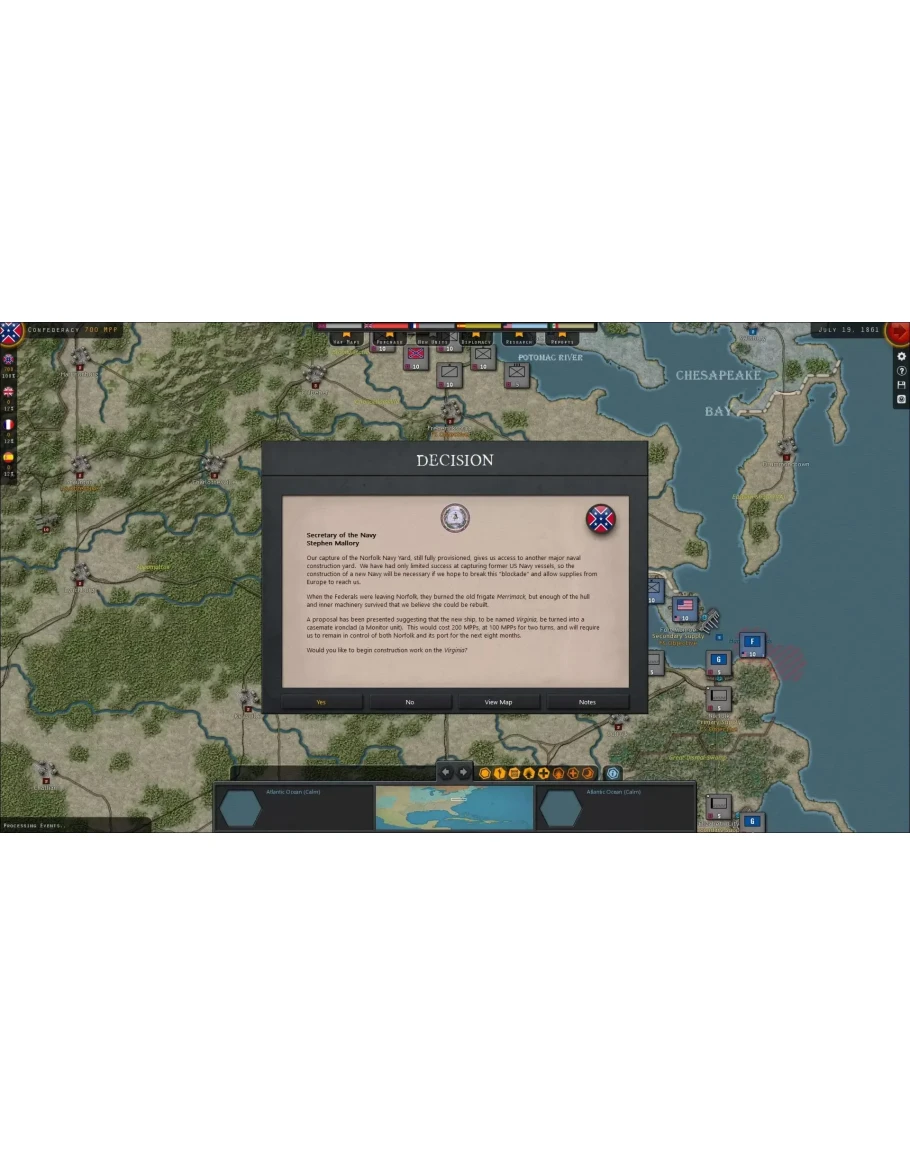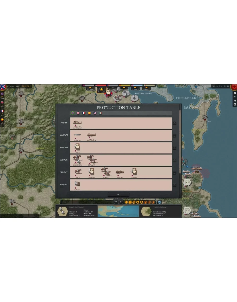 Впервые в истории серии Strategic Command перенесет вас на поля сражений Гражданской войны в США в XIX веке. В этой пошаговой стратегической игре вы будете управлять армиями, исследованиями, производством и дипломатической политикой Союза или Конфедерации в период великих инноваций и драматических сражений. От ваших решений будет зависеть, выйдут ли Соединенные Штаты из этого конфликта единой нацией или двумя. Каковы ваши приказы, господин президент? СОВЕРШЕННО НОВОЕ ПОЛЕ БОЯ Strategic Command: American Civil War поставляется с массивной картой в 66 000 гексов, охватывающей всю Северную Америку от Канады и Нью-Мексико до Карибского бассейна в масштабе 15 км/9 миль. Это самая большая гексагональная карта из когда-либо предлагавшихся в серии Strategic Command! УПРАВЛЯЙТЕ СВОИМИ АРМИЯМИ Поскольку в начале 1861 года профессиональных солдат, готовых к бою, было немного, создание армии будет не менее важным, чем приказ о вступлении в бой. Тысячи добровольцев записываются в армию, и вам нужно будет организовать их в бригады, дивизии и, в конечном итоге, корпуса. Необходимо будет провести исследования, чтобы улучшить их вооружение и боевые навыки. После завершения обучения вы сможете выбрать из множества знаменитых генералов, которые будут ими командовать, включая Ли, Джексона, Гранта, Макклелана, Борегара и Шермана. В условиях, когда судьба целых армий зависит от одного сражения, назначение талантливых генералов может стать решающим фактором между победой и поражением. РЕЧНЫЕ ВОЙНЫ По великим рекам Северной Америки, включая Миссисипи, Огайо и Камберленд, теперь могут плавать совершенно новые речные военные корабли, причем внутренние порты дают возможность быстрого перемещения, а их воды несут опасность десантной атаки. ВЕК ЖЕЛЕЗНЫХ КОРАБЛЕЙ Война в открытом море также была расширена: теперь корабли делятся на речные, прибрежные и морские, деревянные и броненосные. Благодаря самому разнообразному перечню боевых кораблей, который когда-либо предлагался в игре Strategic Command, у ваших адмиралов будет больше возможностей для достижения победы на море, чем когда-либо прежде. РАЗВЕДКА ПЕРЕРАБОТАНА Туман войны еще никогда не был так важен для определения вашего успеха на поле боя, поскольку отсутствие радиосвязи означает, что кавалерия будет играть важную роль в обнаружении вражеских армий и избегании засад. Отряды пехотных разведчиков, партизанские егеря и бронепоезда также могут быть подготовлены для расширения возможностей разведки ваших армий, а генералы, желающие использовать экспериментальные технологии, получат возможность использовать аэростаты наблюдения, перенося войну в небо. ЕВРОПЕЙСКАЯ ИНТЕРВЕНЦИЯ Дипломатические действия, успех на поле боя и такие события, как продажа запасов хлопка Конфедерации или прокламация об эмансипации, определят, вмешаются ли европейские великие державы в Гражданскую войну. Великобританию, Францию и Испанию можно убедить поддержать дело Конфедерации, и их вмешательство может значительно изменить исход войны. ВОЙНА В МЕКСИКЕ В то время как Гражданская война разделяет Соединенные Штаты, французский император Наполеон III ведет очередную битву за контроль над Мексикой. Линия фронта в южном соседстве Америки будет постоянно меняться, и если Франция вступит в войну, игроки смогут взять флаг Республики или Империи, поскольку Граж