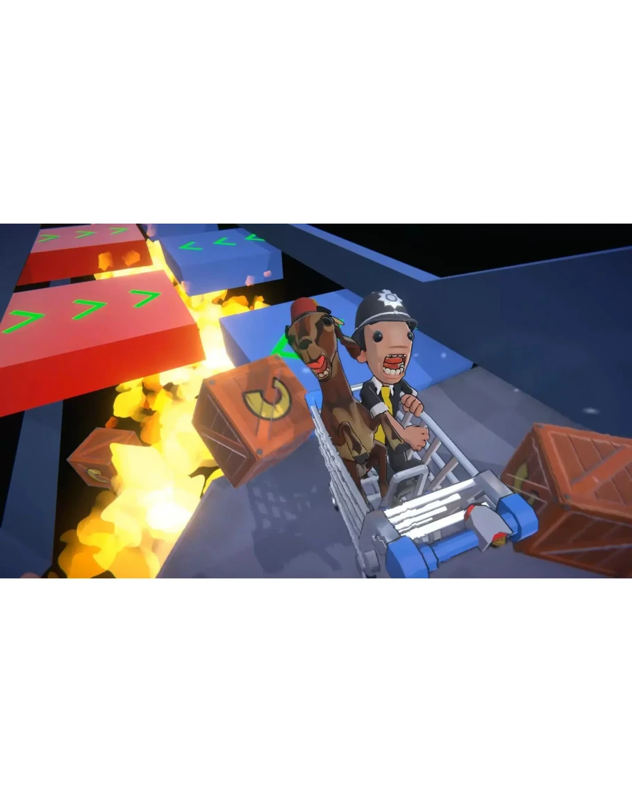 Join man and goat in this chaotic, award-winning couch-co-op adventure! Tackle outlandish obstacle courses, complete rewarding challenges and dodge deadly obstacles in a hectic race to the checkout! Packed with a frantic 38 stage campaign and 4 hilariously fun PvP party modes for 2-8 players. Scream like a man! Scream like a goat! Scream together! A Couch Co-op Experience Like No Other Propel our two heroes through supermarkets, shops and boutiques using their wild, incomprehensible screams! Goat Screams: Kart Turns right! Man Screams: Kart turns left! Scream Together: Kart powers forward! Use your controller triggers to make each of the duo scream - or hook up two mics and *literally* shriek your way to victory! 4 PvP Party Modes for 2-8 Players Collect all the items in the fastest time in "Shopping List", dominate the arena in an epic clash of man, goat and trolley in "Sumo", scream as though your life (or indeed, some points) depended on it in a "Race", and finally just survive as long as you possibly can in "Elimination". Action-Packed Story Mode The 38 stages include outlandish obstacle courses, rewarding challenges, time-limited collectathons and not forgetting the-mode-where-you-knock-over-the-tins-of-beans. A World of Insane Obstacles Behind each shopfront, expect a relentless stream of obstacles blocking your way to the checkout! From the mundane (conveyor belts, spillages) to the absurd (fire pits, swinging axes, sumo wrestlers & more!). Experience "Duet" Co-Op Mode Yes, you and a friend can *literally* shriek your way to glory by controlling the action using a mic. A mode that will certainly have your neighbours talking! Dress to Impress Customise the appearance of your characters with over 50 customisation options! Choose from a range of excellent shirt & tie combos, as well as some outlandish headgear! © 2019/ 2020 Billy Goat Entertainment Ltd™. Published by PQube Ltd