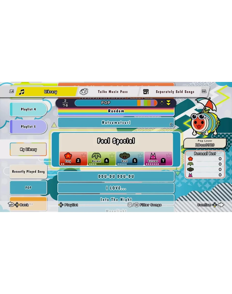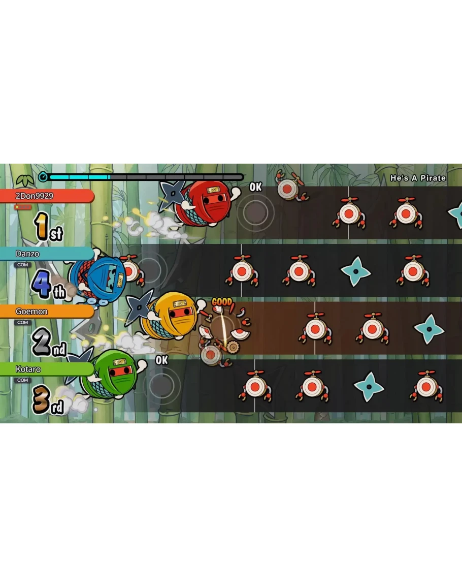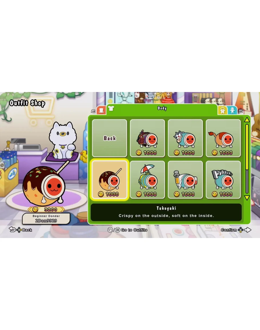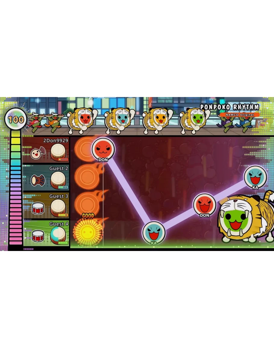 Добро пожаловать в Омико-сити, где можно найти все любимые элементы Taiko. Вместе с Дон-тяном познакомьтесь с Кумо-кюном и попытайтесь стать мастером барабанов-тайко! Режим тайко Стучите в ритме любимых песен и попробуйте доиграть их до конца. 4 режима сложности. 76 песен из аниме, игр, поп-музыки и VOCALOID™, в том числе Gurenge, Ending Theme Song из «Мой сосед Тоторо», Charles, MEGALOVANIA, Into The Night, Feel Special и не только. Можно играть с кем-то, не напрягаясь, или попытаться поставить рекорд, а поддержка ударных поможет с чувством ритма. 3 вида игр для 2–4 игроков. Великая барабанная битва Под ритм песен ваши игрушки будут оттеснять игрушки противника. Группа Дон-тяна Проведите успешные концерты группой из 4 участников! Гонка в ниндзя-додзё Станьте ниндзя и попробуйте победить в гонке с 2–4 другими игроками Онлайн-матчи Рейтинговые матчи Соревнуйтесь с игроками со всего мира! Матчи в комнате Для расслабленной игры в режиме тайко или «Великой барабанной битве» с друзьями и игроками со всего мира. Музыкальный пропуск Taiko До 700 дополнительных песен! Новые добавляются каждый месяц! Некоторые песни продаются отдельно. * Этот продукт есть и в другом издании. Следите, чтобы не купить его дважды. * В режиме тайко и «Великой барабанной битве» может играть до 2 человек. В «Группе Дон-тяна» и «Гонке в ниндзя-додзё» может быть до 4 участников. Каждому требуется 1 контроллер. * Игра поддерживает контроллер Taiko no Tatsujin в виде барабана для Xbox Series X|S и ПК. Taiko no Tatsujin™: Rhythm Festival & ©Bandai Namco Entertainment Inc.