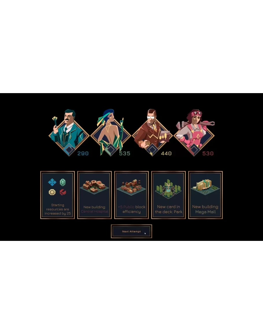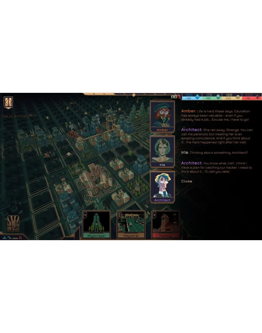 Социальные и экономические конфликты потрясли мир. Стабильность сохранилась лишь в одном мегаполисе, но и ему хватает ресурсов лишь на поддержание шаткого баланса сил. Власти приняли решение создать алгоритм, который сможет построить совершенный город для всех слоёв населения. Так появилась Айрис, искусственный интеллект для возведения утопии. Добро пожаловать в Technotopia! Постройте идеальный город В вашем распоряжении колода карт со зданиями, из которых вы будете строить город. Стройте небоскребы, парки, жилые районы и транспортные магистрали. Именно вы выбираете то, как будет выглядеть идеальный мегаполис. Сохраняйте хрупкий баланс Четыре фракции борются за контроль над городом: капиталисты, аристократы, политики и простой народ. Они сделают всё для того, чтобы прогнуть под себя остальных, а каждое ваше решение смещает чаши весов. Играйте роль арбитра, удовлетворяя потребности всех в равной степени. Решайте запросы населения Город — живой организм, в котором постоянно что-то происходит и требует вашего внимания. Куда расселить пострадавших от пожара? Что делать с бандой, взявшей под контроль кварталы? Фракции будут предлагать свои решения, но следовать им или продвигать свою агенду — решать только вам. Формируйте новые связи В городе живёт много разных персонажей. Хакеры, олигархи, преступники и изобретатели — общайтесь с самыми яркими представителями населения и оказывайте им услуги в обмен на помощь в поддержании порядка. Идеальный город создаётся для людей, и именно с их помощью его можно построить!