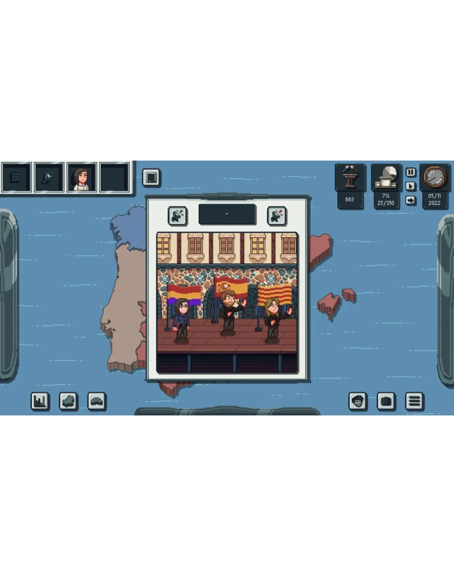 Играйте за существующего или полностью настраиваемого политического деятеля и участвуйте во всеобщих выборах в Испании 2023 года или во множестве других альтернативных выборов! В игре "Vox Populi: Spain 2023" вы и окружающие вас персонажи должны продвигать свои идеи и повышать популярность по всей стране, чтобы одержать победу! Особенности игры: Выбирайте из множества различных сценариев, которые помещают страну в разнообразные реалистичные или вымышленные ситуации в разные временные периоды. Набирайте свою предвыборную команду из множества персонажей, основываясь на их идеологиях или характеристиках. Воздействуйте напрямую на регионы страны или демографические группы, чтобы влиять на их политические взгляды и электоральные предпочтения. Адаптируйте свою стратегию к действиям оппонентов и создавайте препятствия на их пути. Боритесь за национальное единство или, наоборот, продвигайте независимость испанских автономных сообществ. Сталкивайтесь с множеством непредвиденных событий, которые встряхнут политическую жизнь страны. Собирайте достаточное количество мест в будущем Конгрессе депутатов, чтобы обеспечить своё влияние на судьбу нации. Собирайте десятки карт, которые помогут вам в великих национальных дебатах. В игру включено: Девять различных сценариев из прошлого или будущего, многие с элементами рандомизации для повторного прохождения, адаптированных к истории и политике страны Десятки готовых или случайно генерируемых персонажей Детализированный редактор персонажей с полной настройкой Десятки уникальных идеологий и политических программ Реалистичное деление Испании на регионы и демографические категории, каждая со своими характеристиками Гибкие действия персонажей, позволяющие использовать широкое разнообразие игровых стилей Система независимости и аннексий, специфичная для Испании 80 уникальных событий Десятки черт персонажей, влияющих на их действия или дебаты 50 разнообразных карт для динамичных дебатов между персонажами Уникальная система парламента и политических коалиций, основанная на идеологиях каждого кандидата Подробные сборники данных и статистики для отслеживания эволюции электората и вашей кампании И многое другое, что предстоит открыть!
